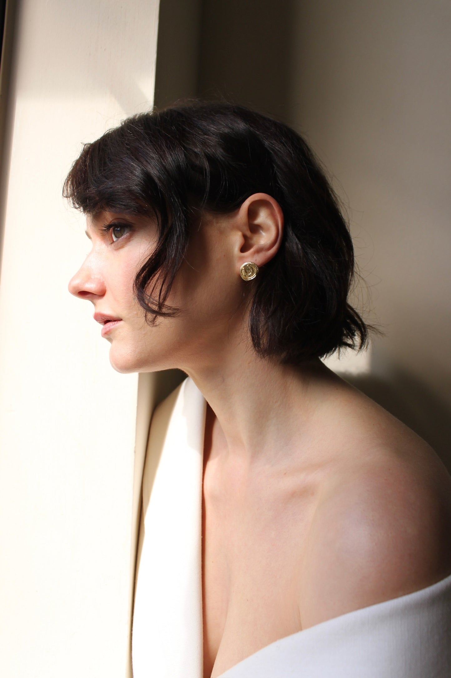 Introducing the Evangeline Earrings, a beautiful and elegant pair crafted from durable brass and adorned with a symbol of fortune and good wishes. These petite earrings are suitable for everyday wear and can bring a touch of luck to any outfit. We are proud to add them to our exquisite collection.
