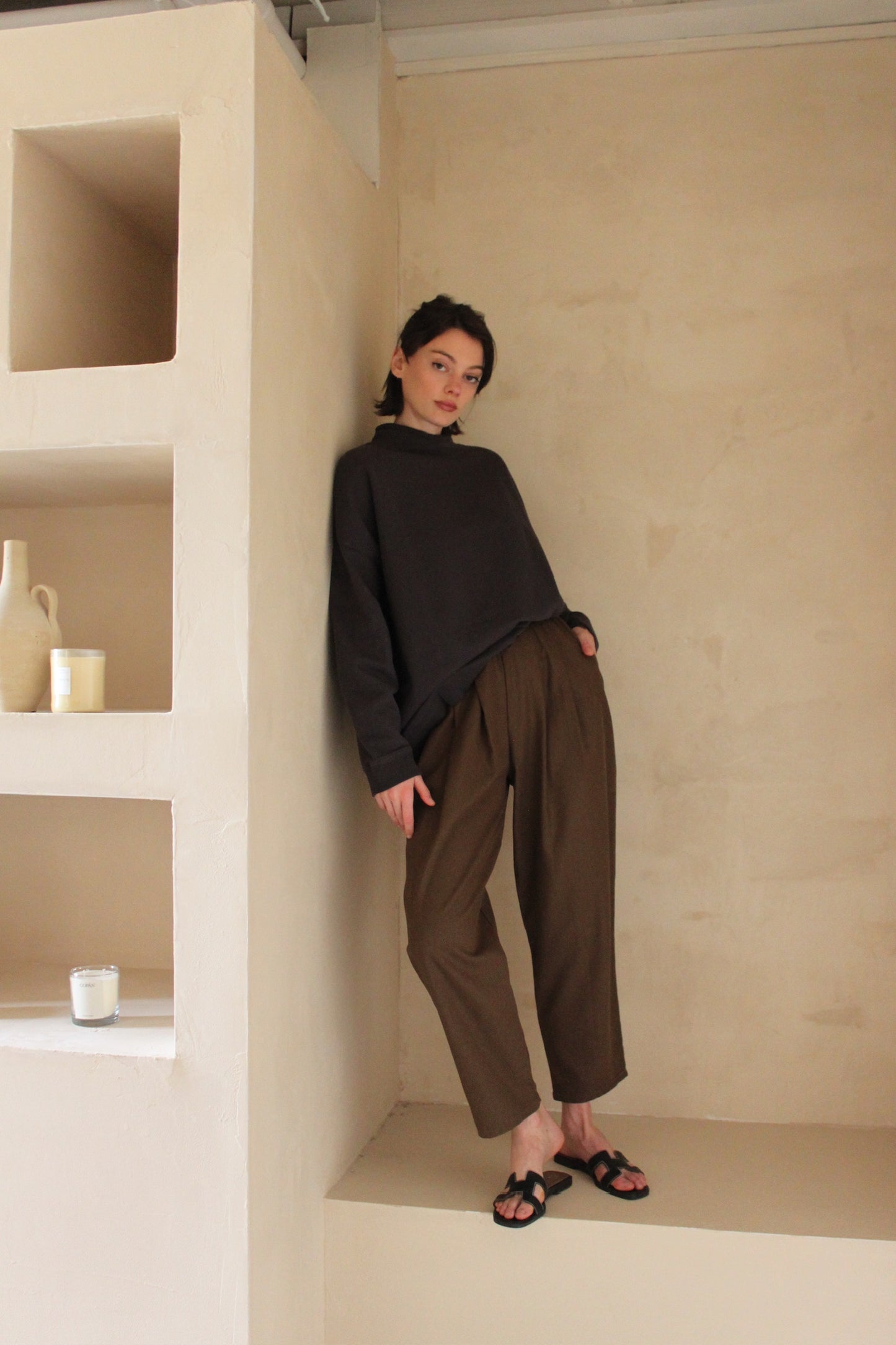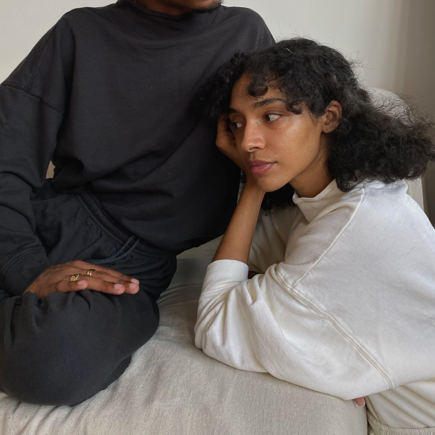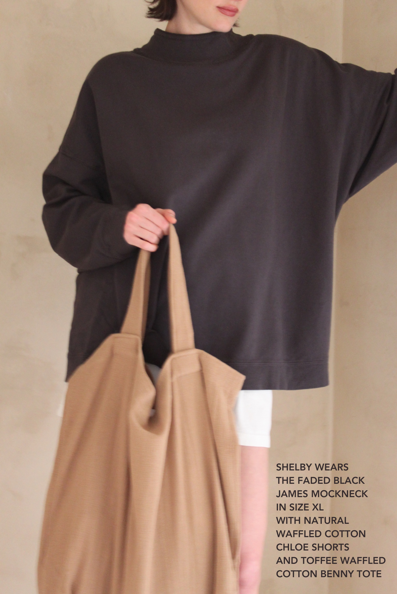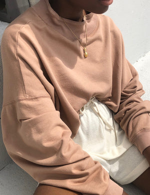 Inspired by a one-of-a-kind vintage find, the James Mock Neck features dropped shoulders, dolman sleeves, and straight bottom hem. Made with a pre-washed, lightweight cotton, Na Nin sweats feel amazingly soft yet substantial, and are ideal for wearing year-round.