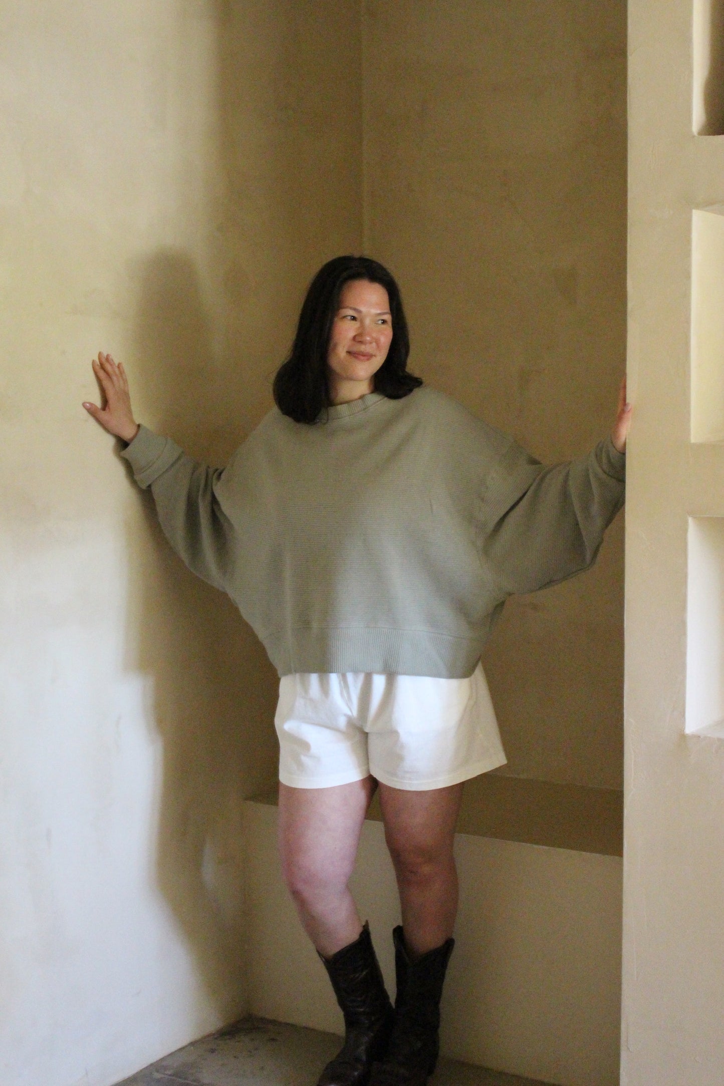 Our Margot Cropped Crewneck Sweatshirt is a playful relaxed long sleeve knit top that features dropped shoulders, a rich hem and cuffs, and a voluminous fit. The wonderful hand and soft texture of our rippled cotton creates a combination of style and ease that truly captures the look and feel of beloved vintage.