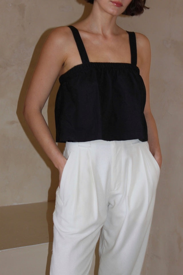 The Sabina Top is a simple boxy cropped tank, available in our beloved seasonless raw silk fabrication. The Sabina boasts an effortless and easy cropped fit perfect for pairing with high-waisted trousers and shorts.