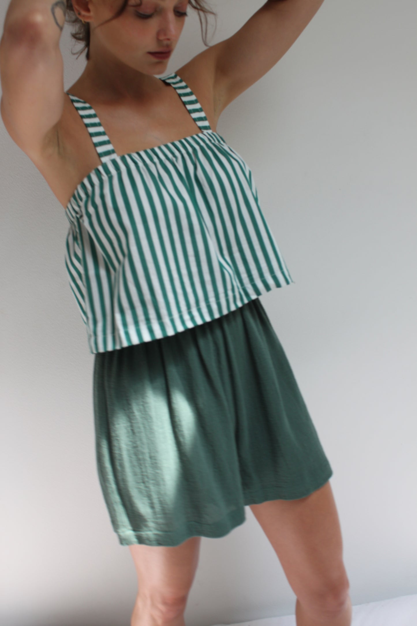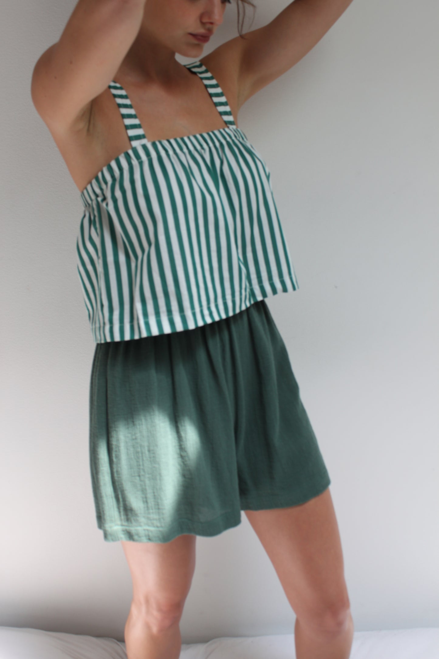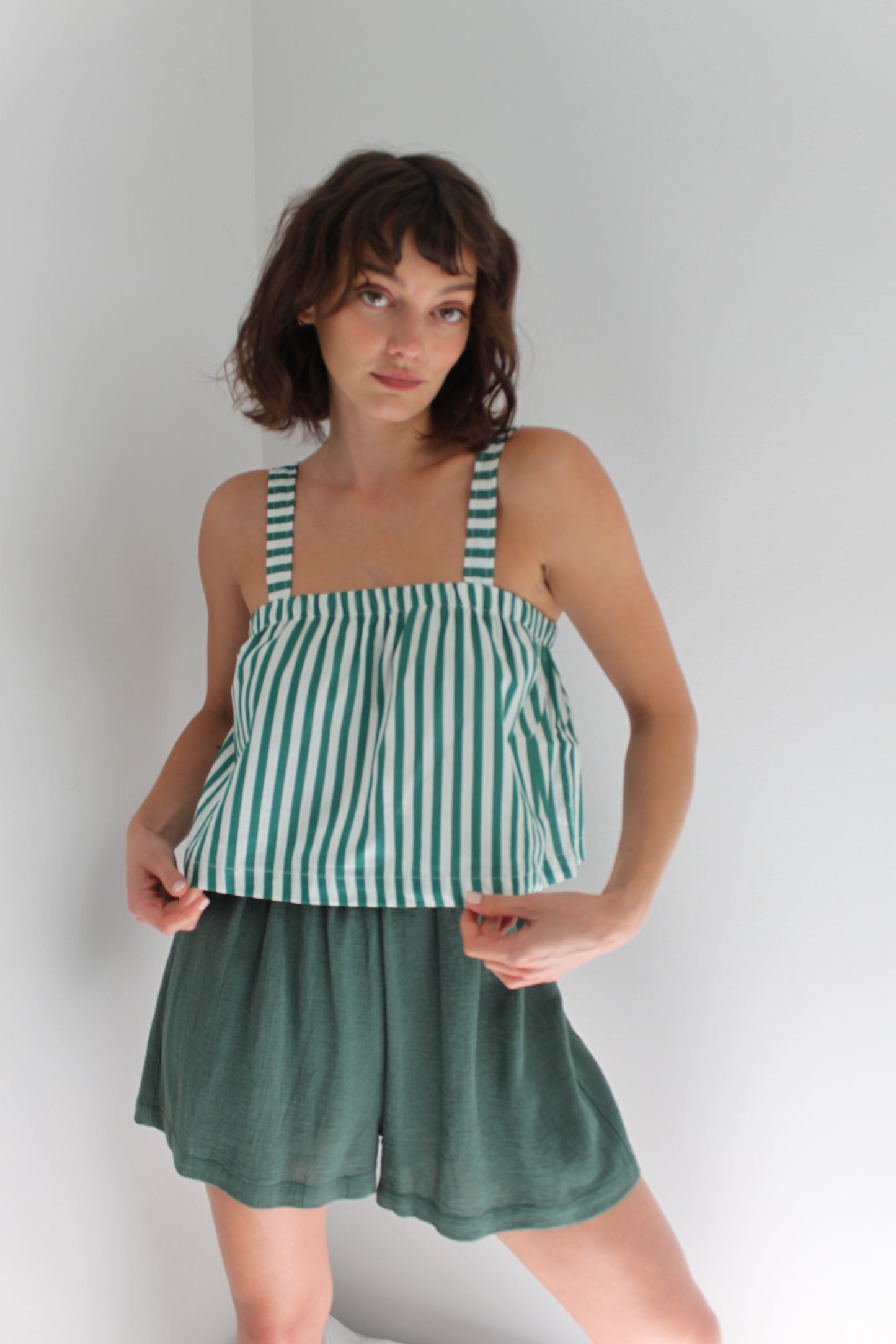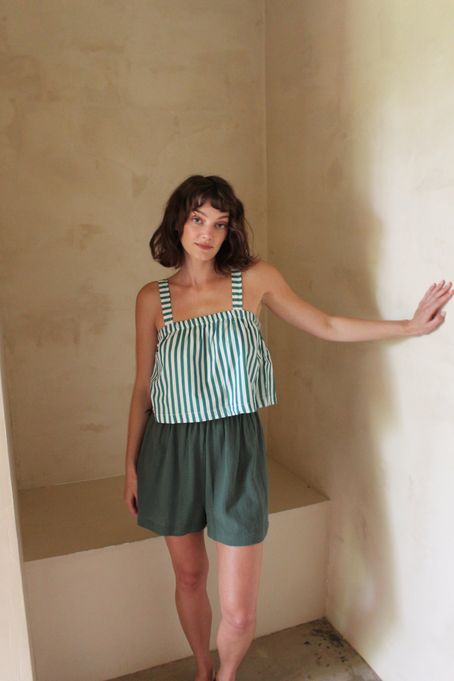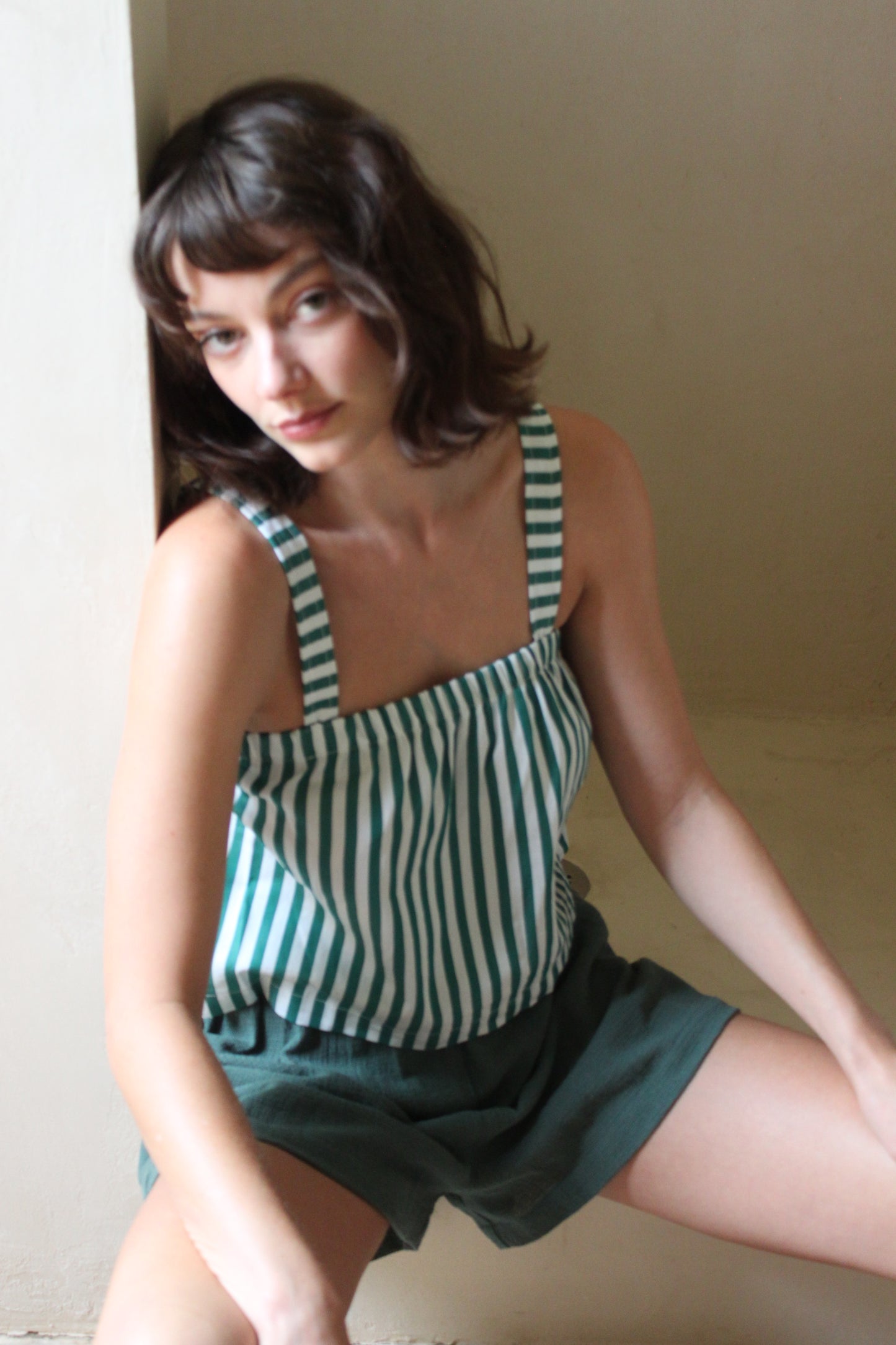 The Sabina Top is a boxy cropped tank, available in a custom woven and cool-to-the-touch cotton poplin. The Sabina has an effortless and easy cropped fit perfect for pairing with high-waisted trousers and shorts.