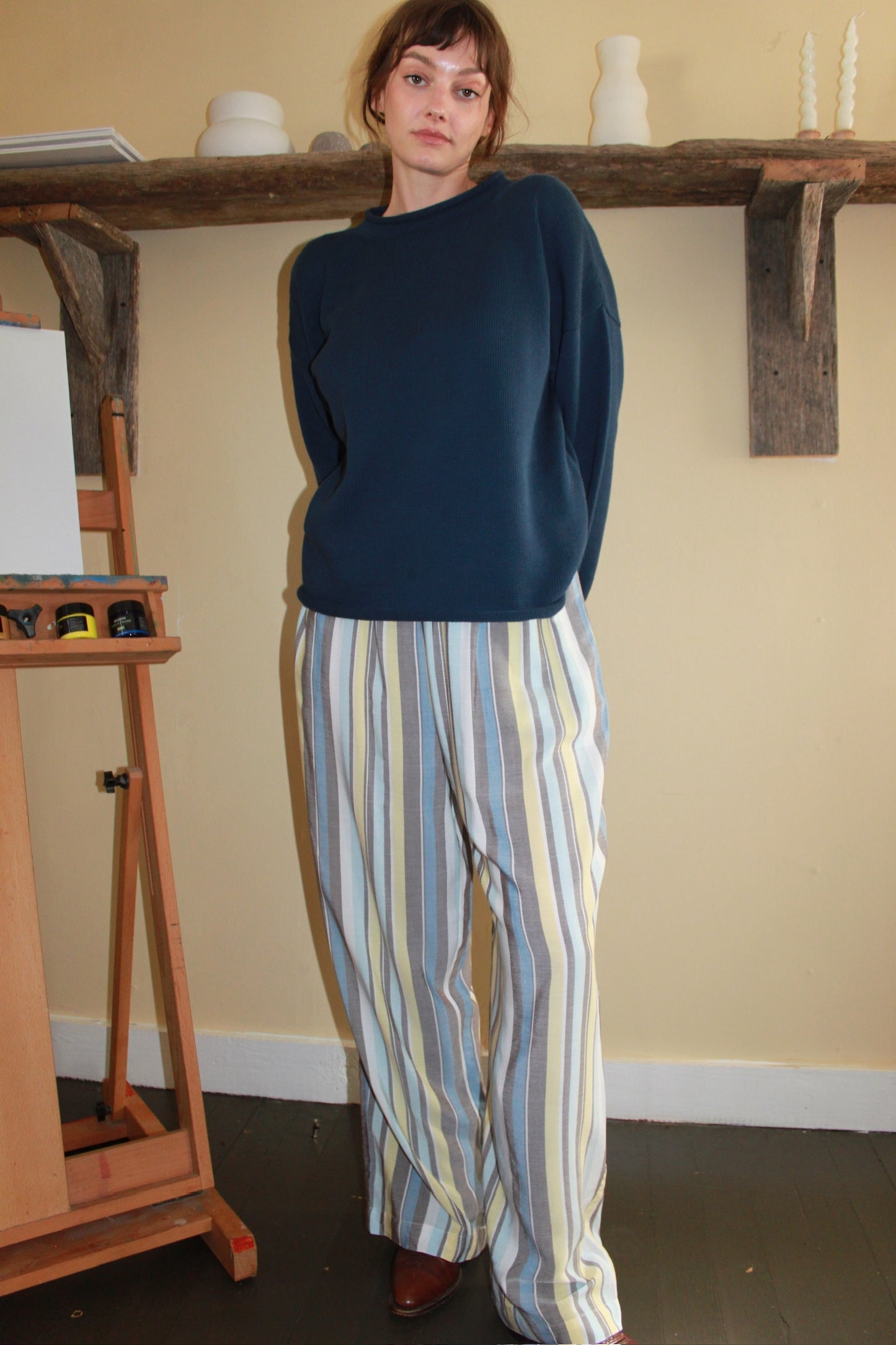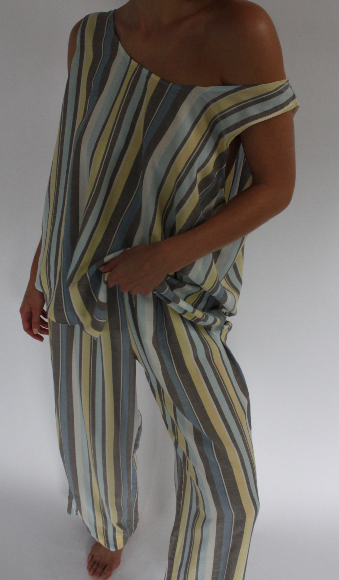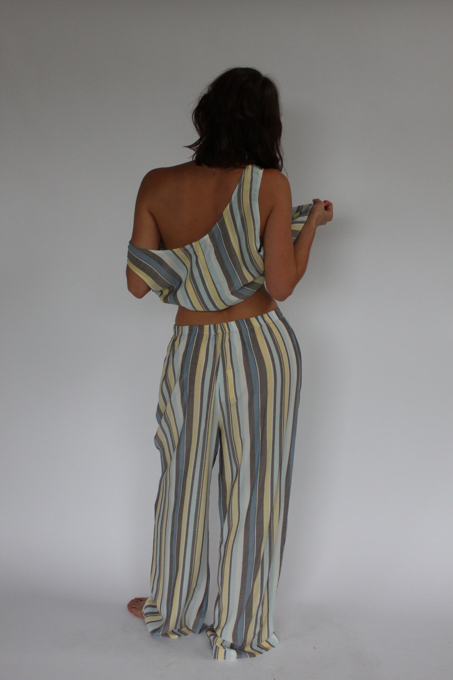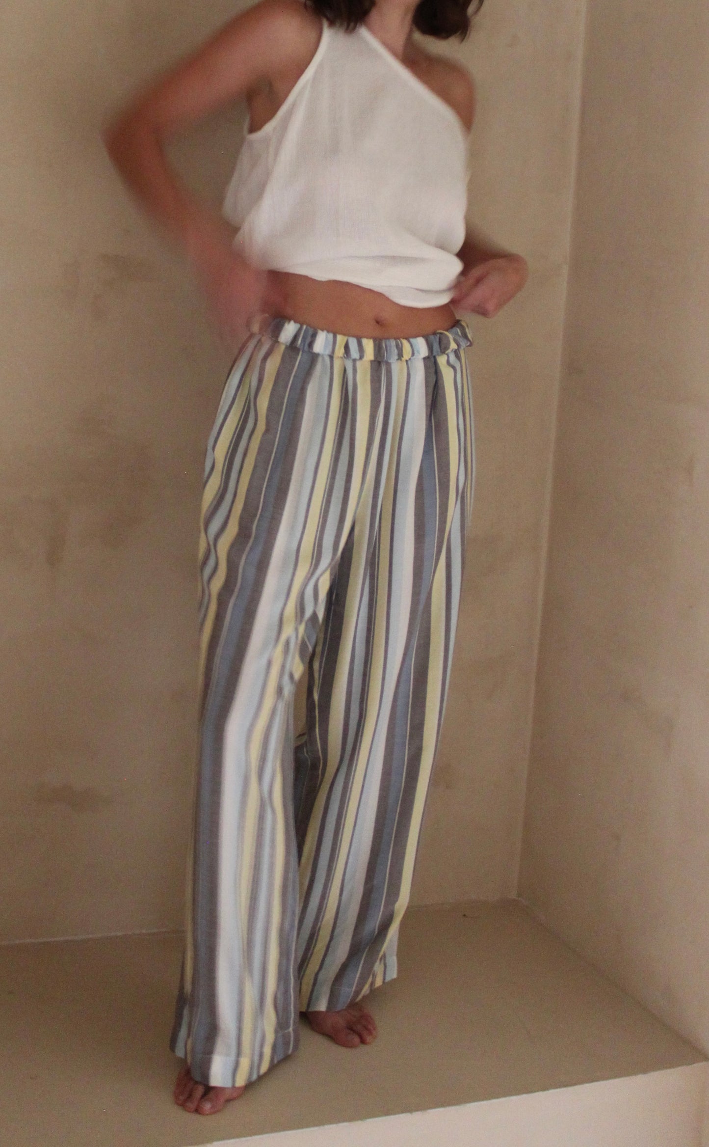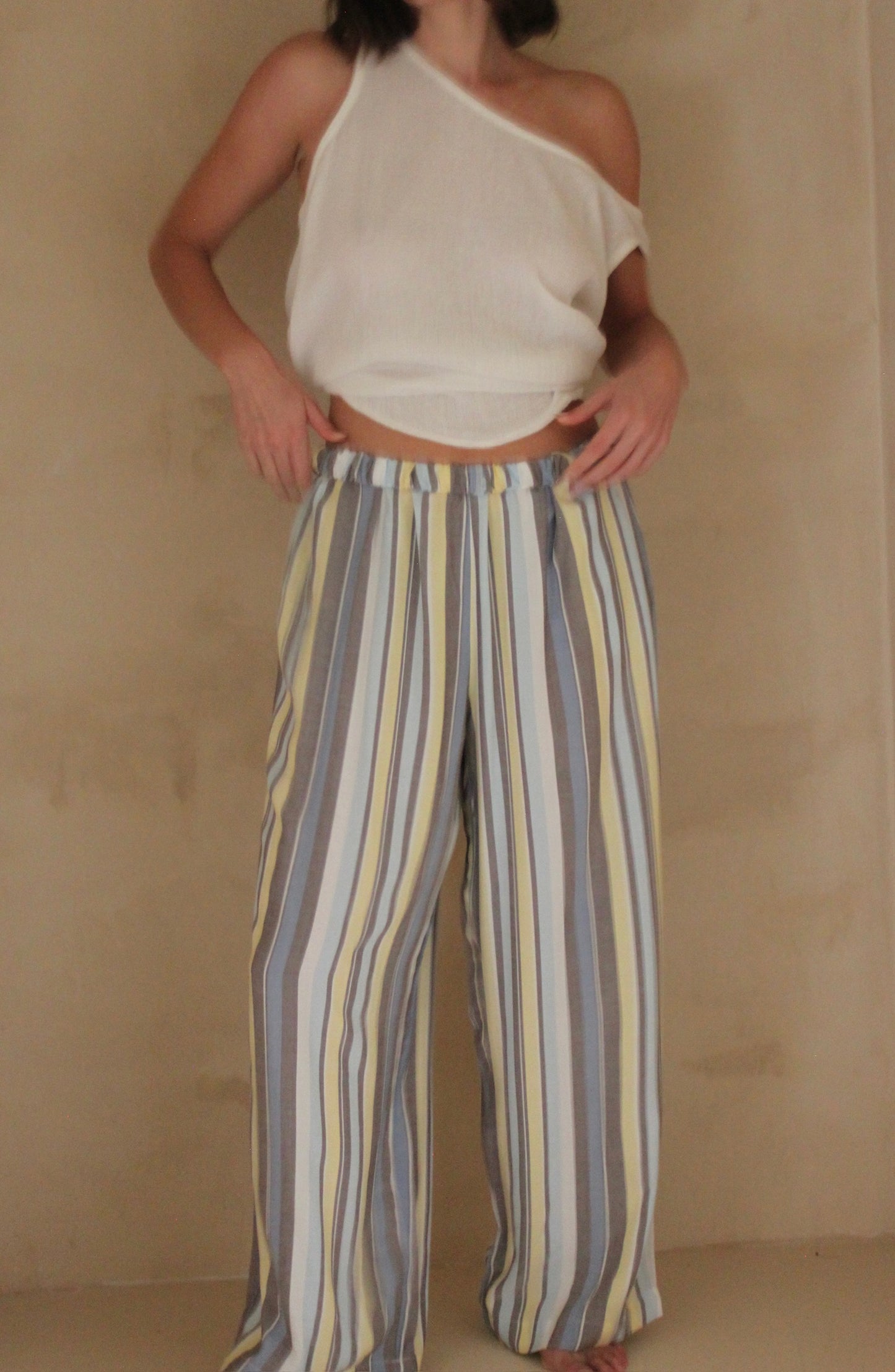 Experience effortless style with our new Patricia Striped Rayon Pant. This luxurious fabric offers a lightweight and cool texture, perfect for every season. The simple elastic waistline and functional side pockets make this pant a versatile choice - wear it high on your waist for a tailored look or lower on your hips for a relaxed vibe. Coordinate with our Marni Tank for a timeless outfit.