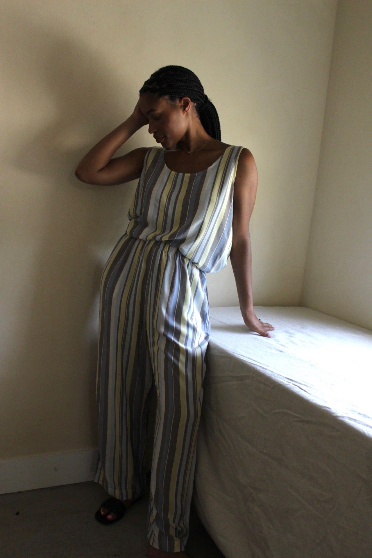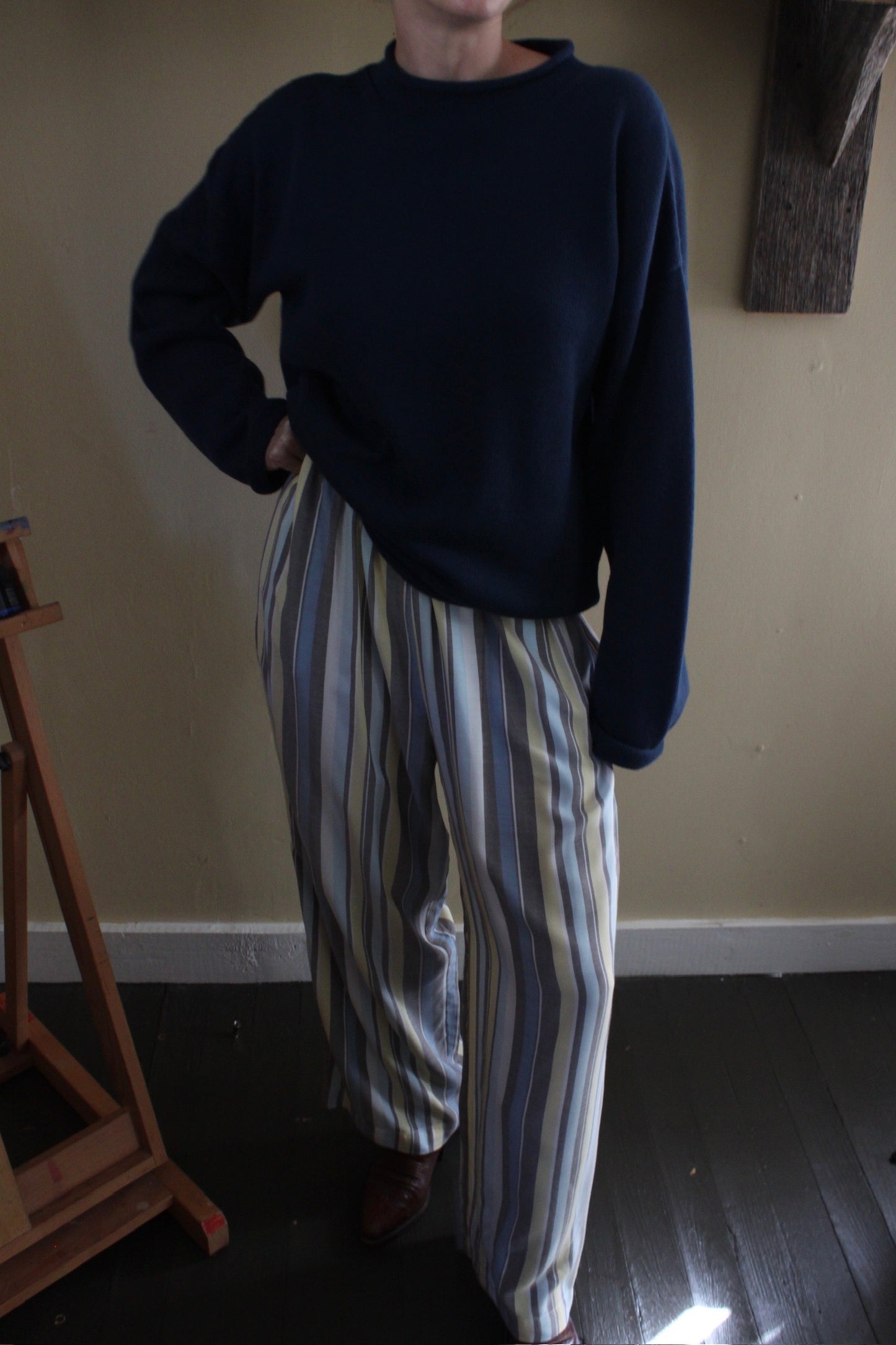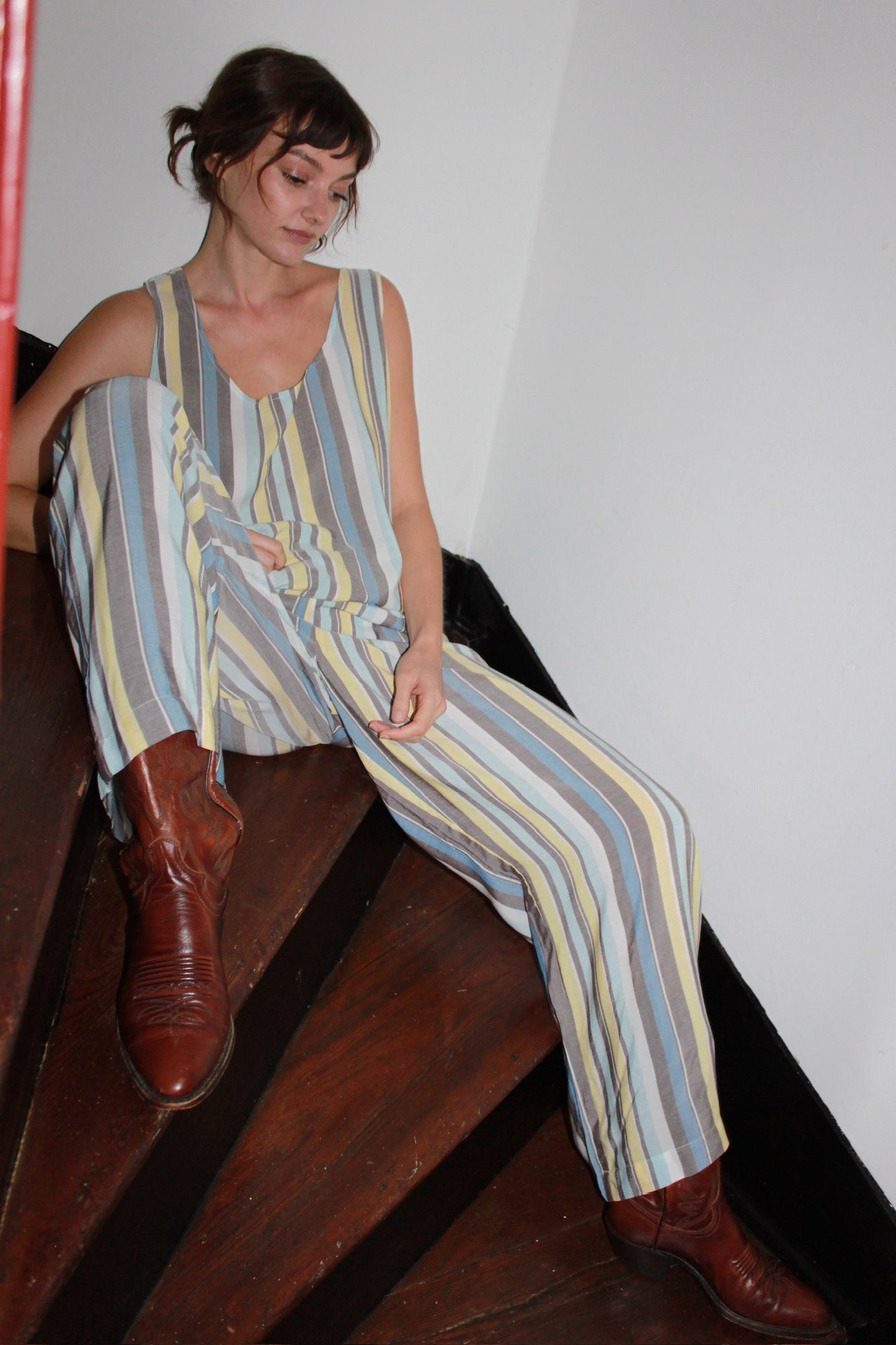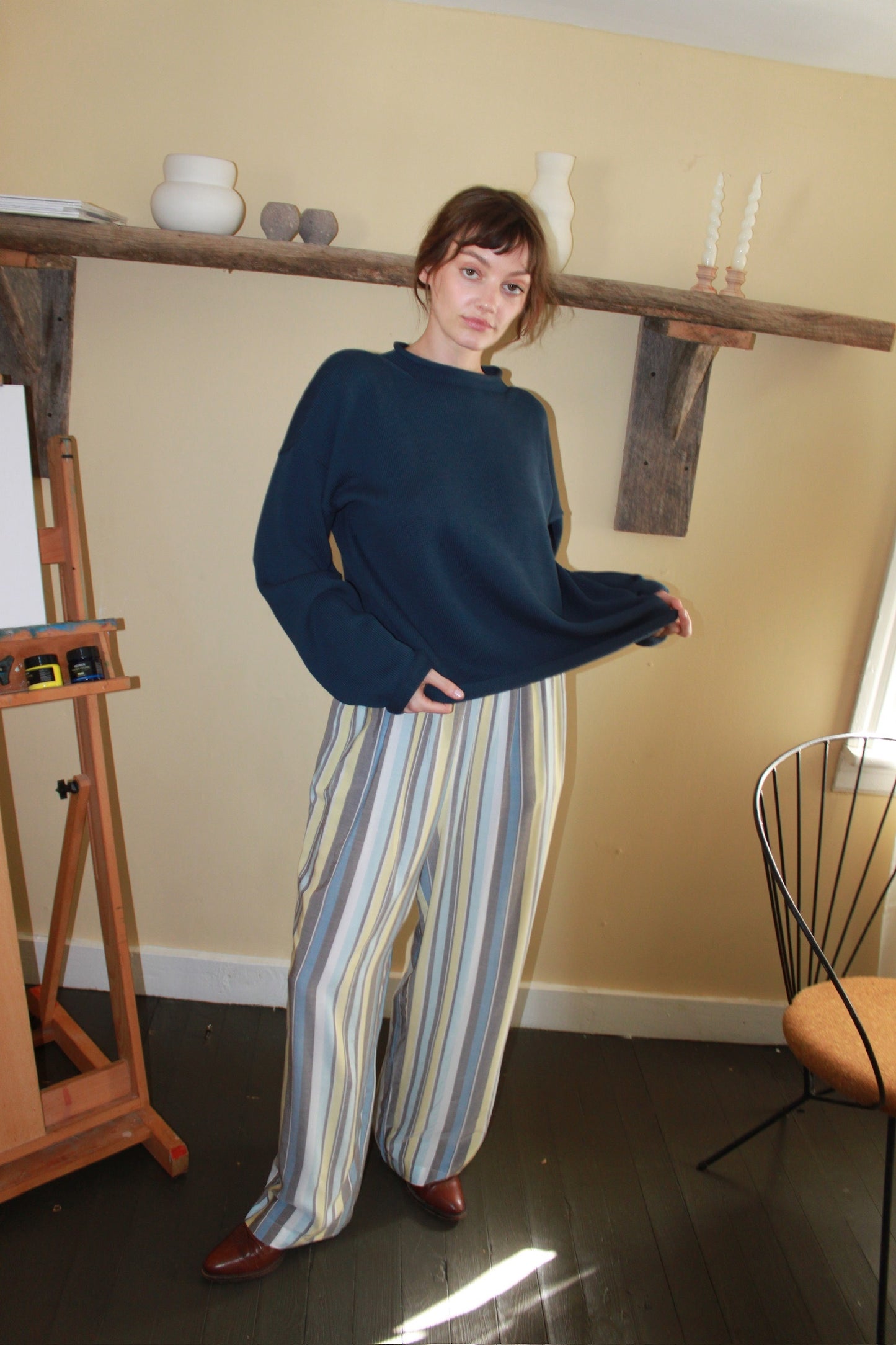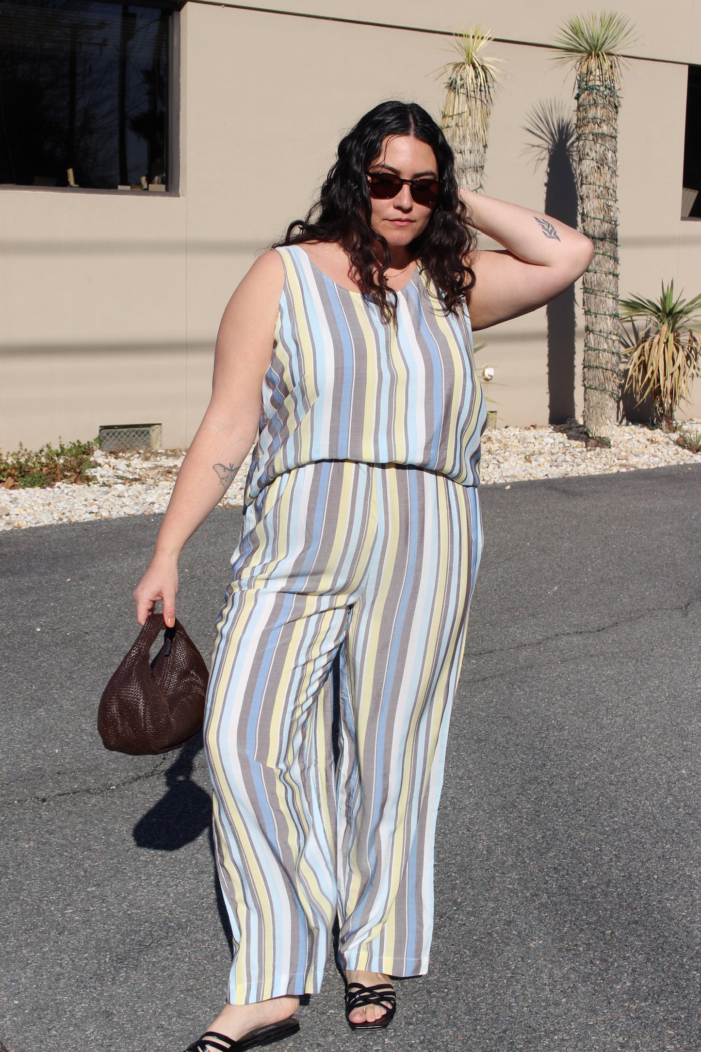 Experience effortless style with our new Patricia Striped Rayon Pant. This luxurious fabric offers a lightweight and cool texture, perfect for every season. The simple elastic waistline and functional side pockets make this pant a versatile choice - wear it high on your waist for a tailored look or lower on your hips for a relaxed vibe. Coordinate with our Marni Tank for a timeless outfit.