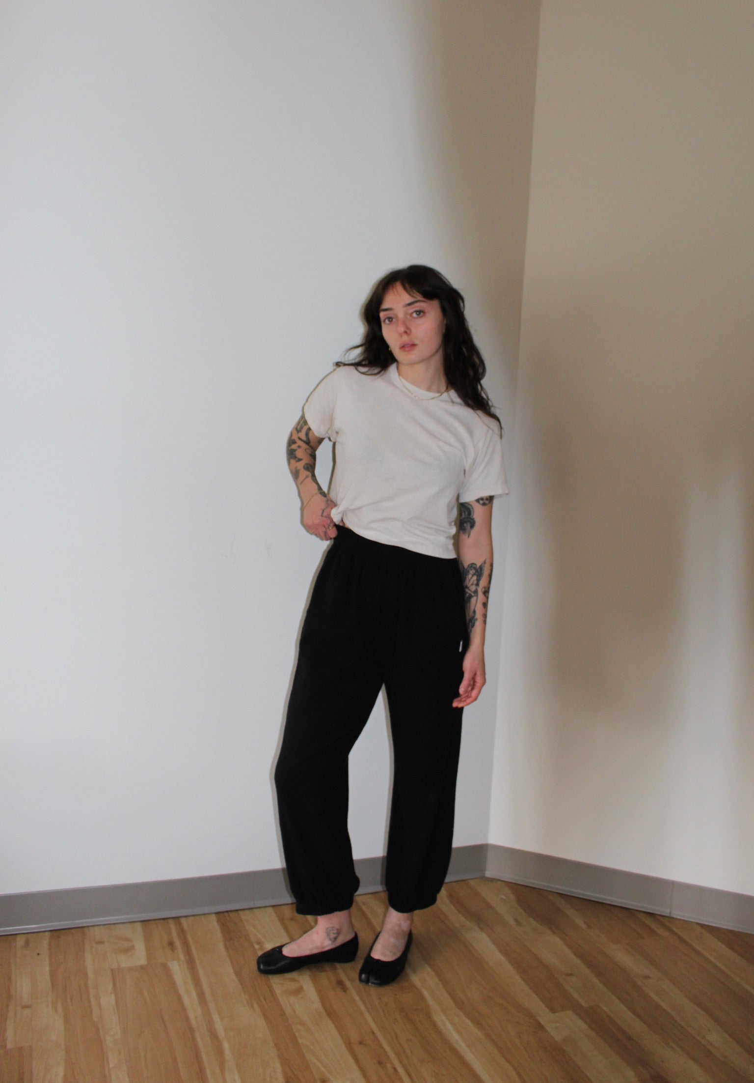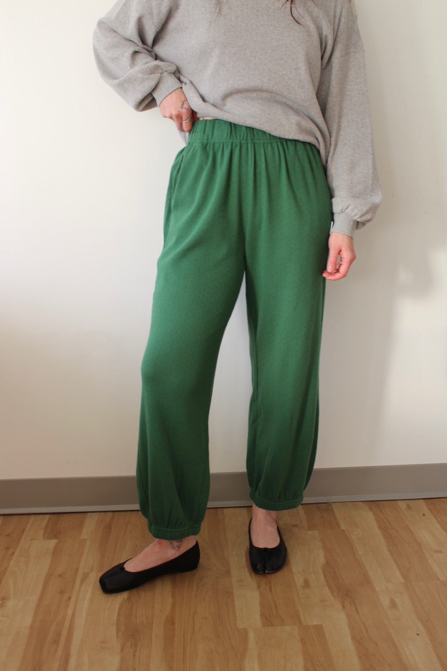 Crafted from sumptuous cotton pointelle jersey, these Balloon Pants deliver a refined take on relaxed elegance. The high elastic waist and gathered ankle cuffs create a flattering silhouette that transitions seamlessly from home to street, while strategically placed side panels provide subtle definition. Hidden slit pockets and a gentle drape ensure both practicality and polish. Designed for effortless movement, they pair beautifully with any footwear and layer seamlessly into your everyday wardrobe.