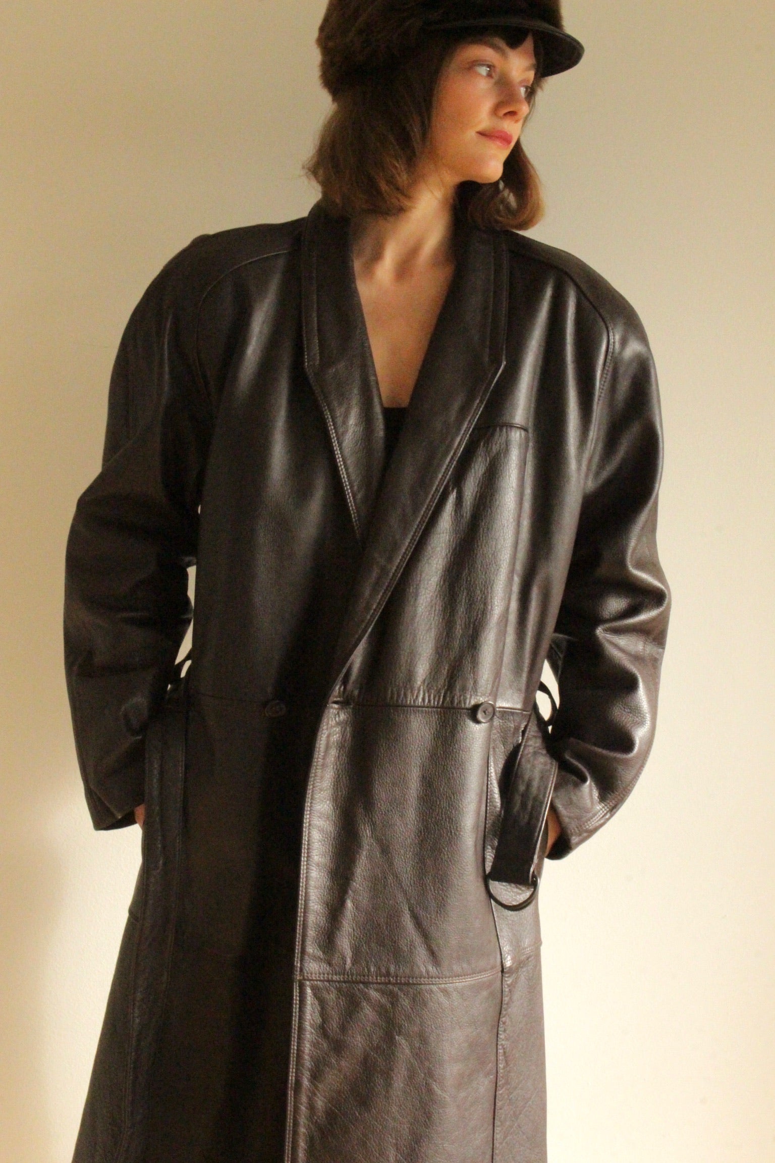Rare Vintage Espresso Belted Leather Coat