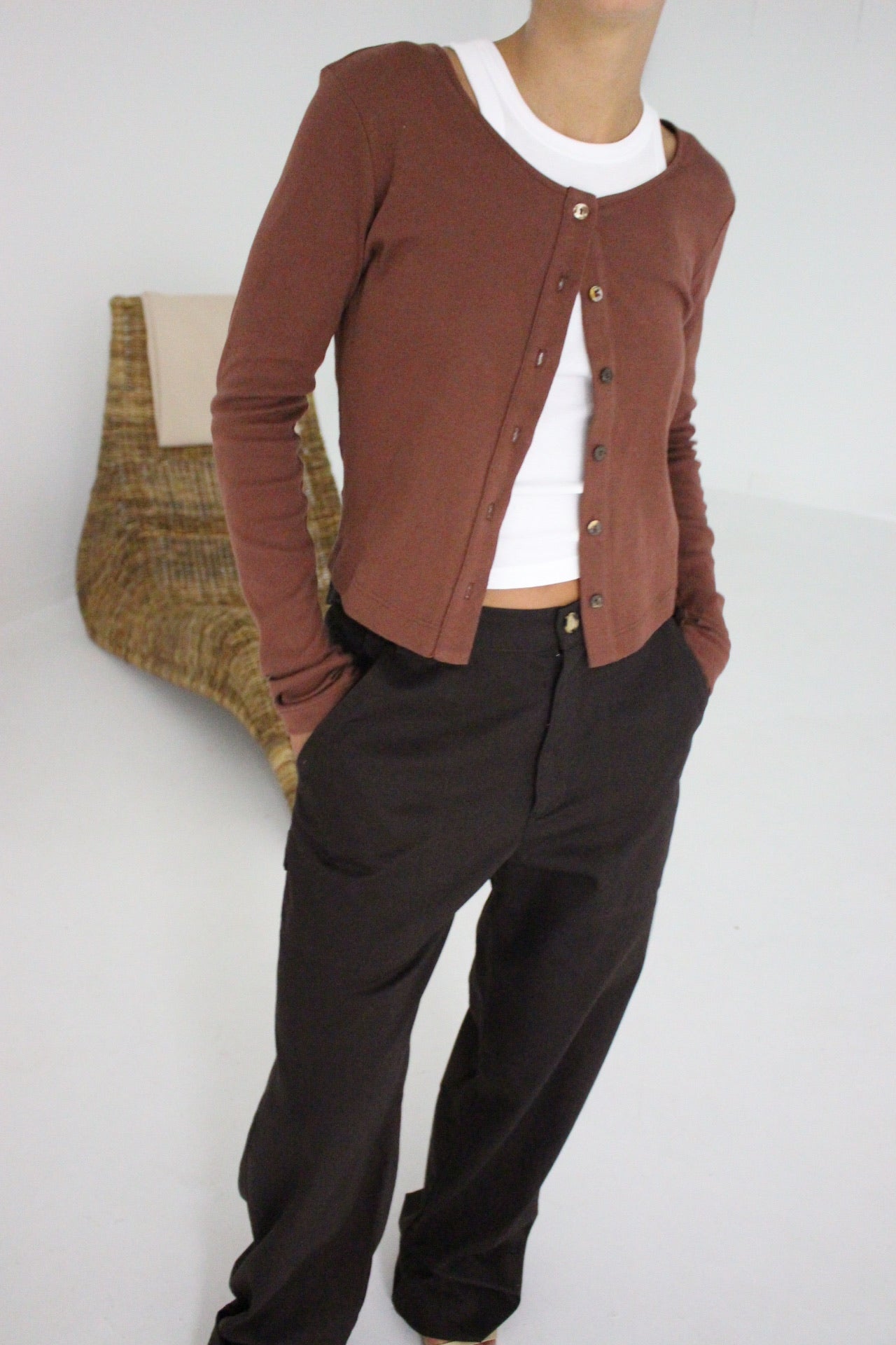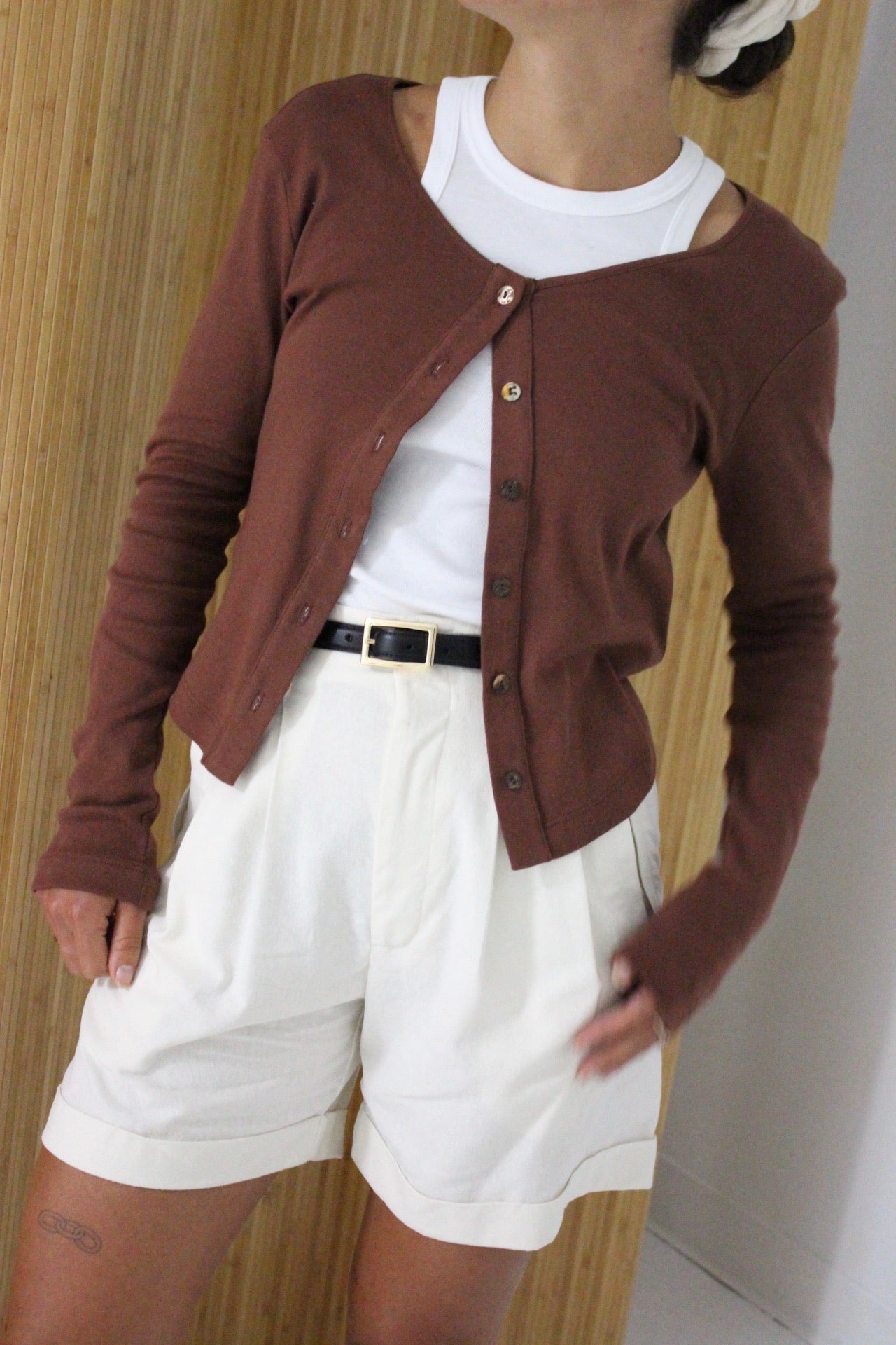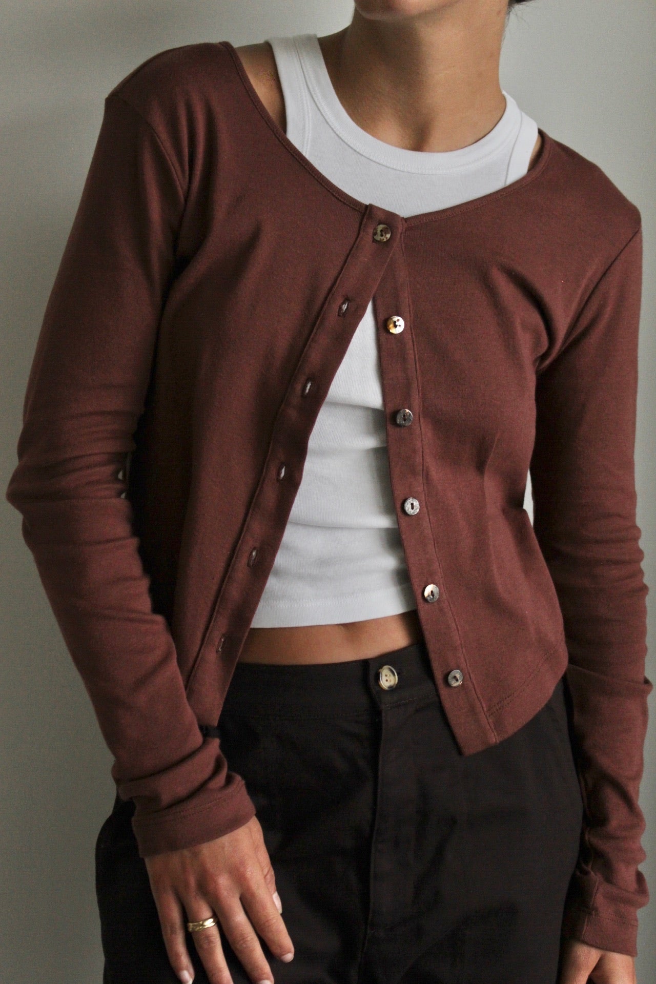 The La Relaxed Rib Cardigan is a necessary year-round staple, featuring a button down design and a slightly cropped fit.