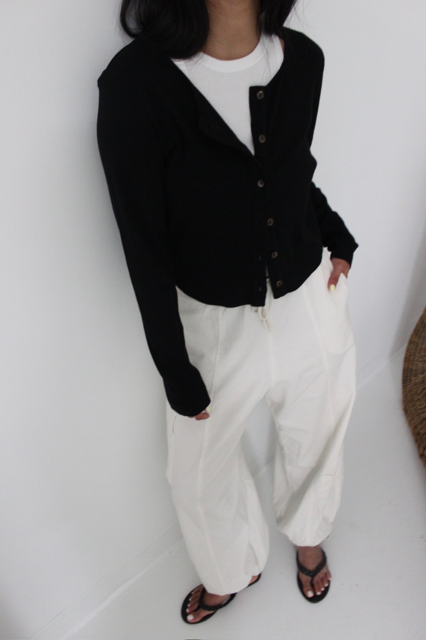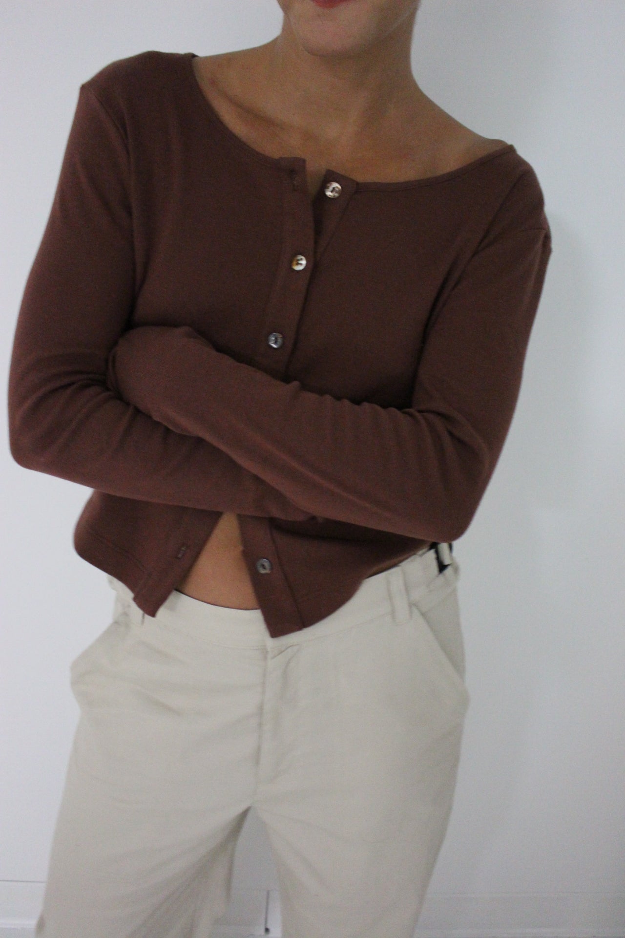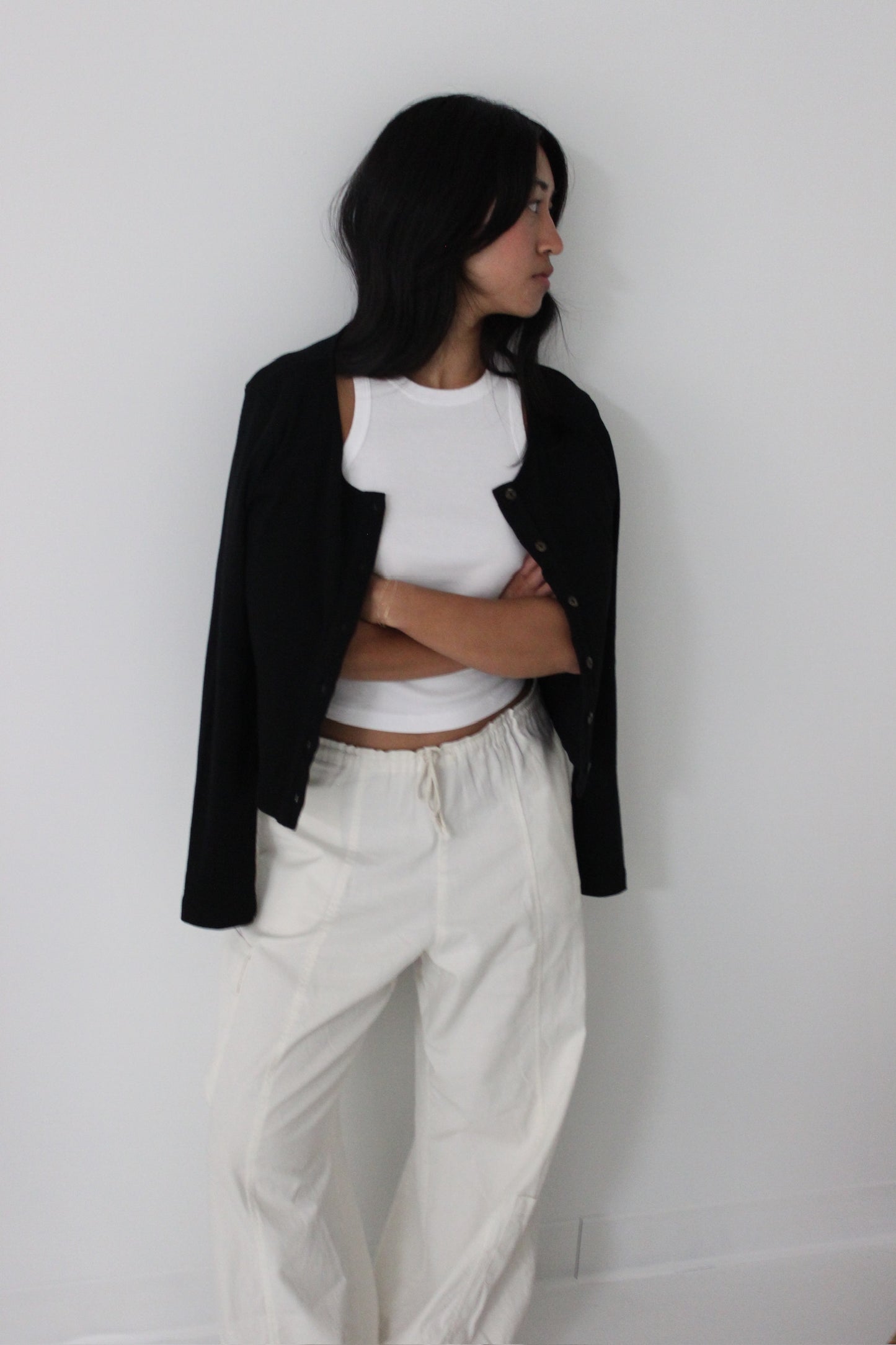The La Relaxed Rib Cardigan is a necessary year-round staple, featuring a button down design and a slightly cropped fit.