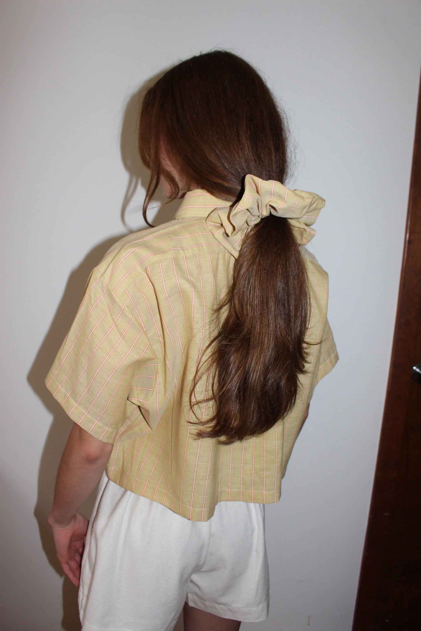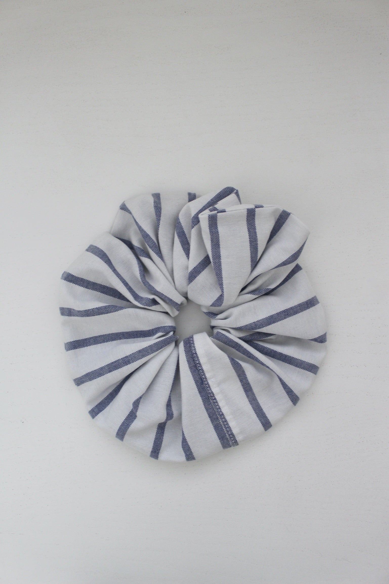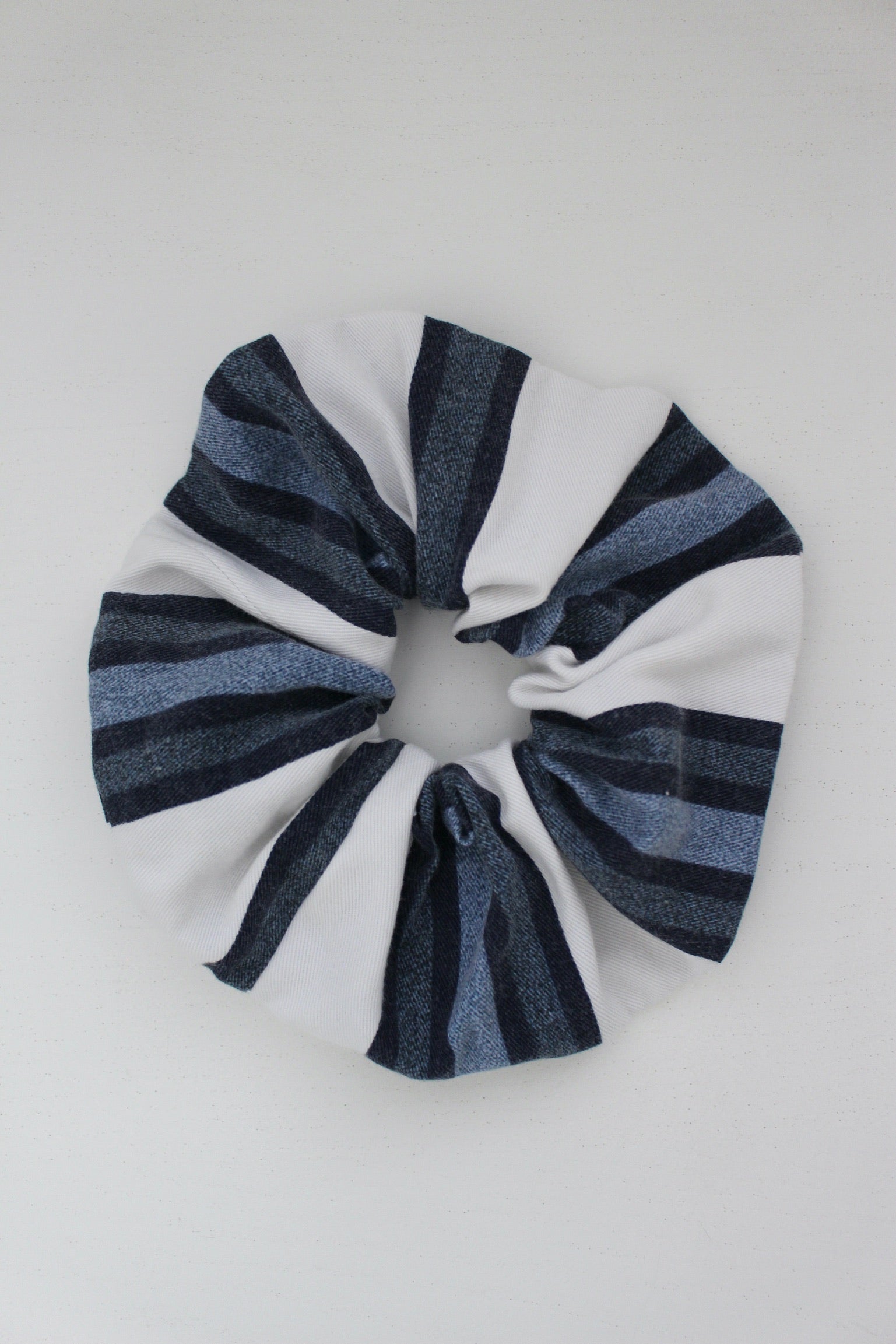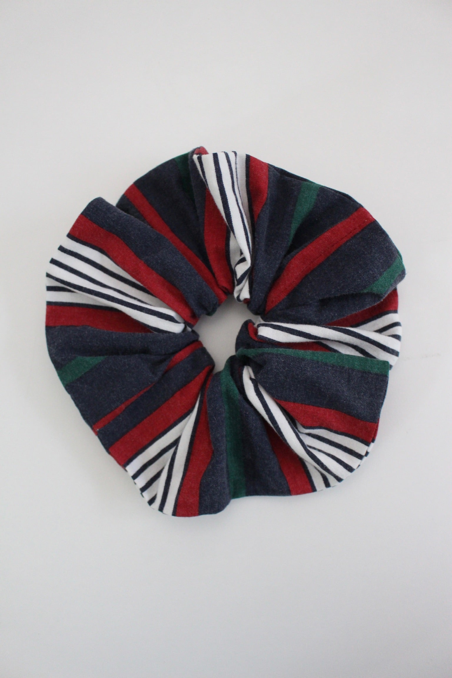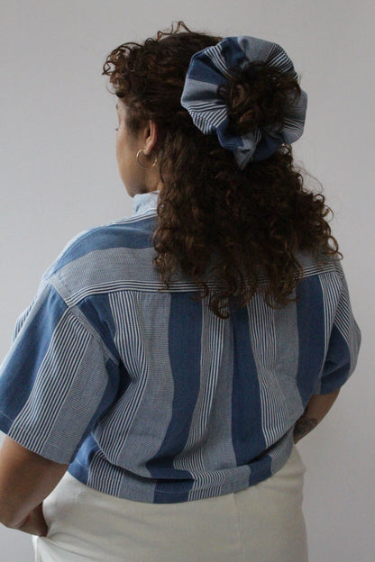The Reworked Striped Scrunchie is made from remnants left over from the production of our Reworked Cropped Button Down.