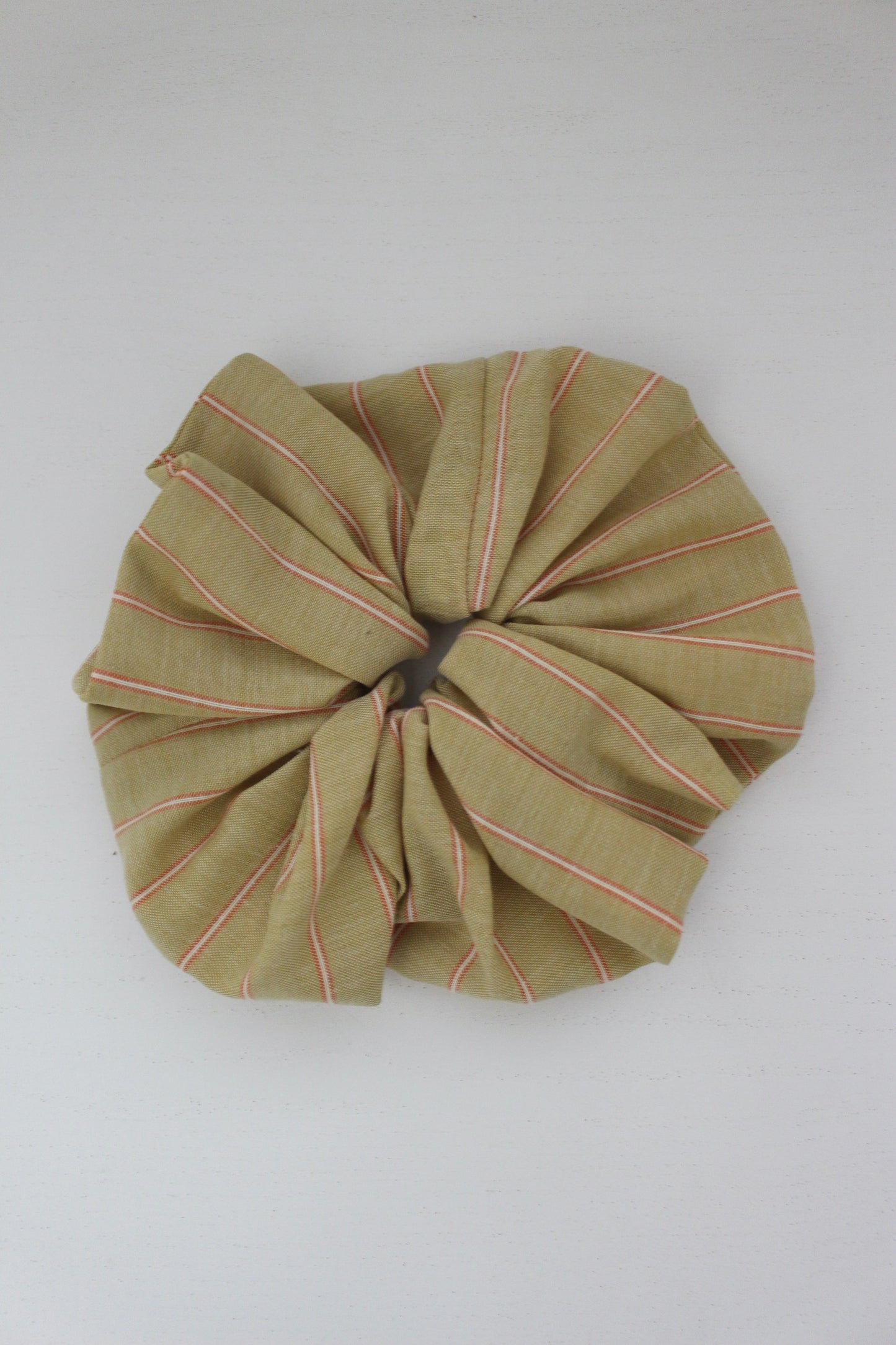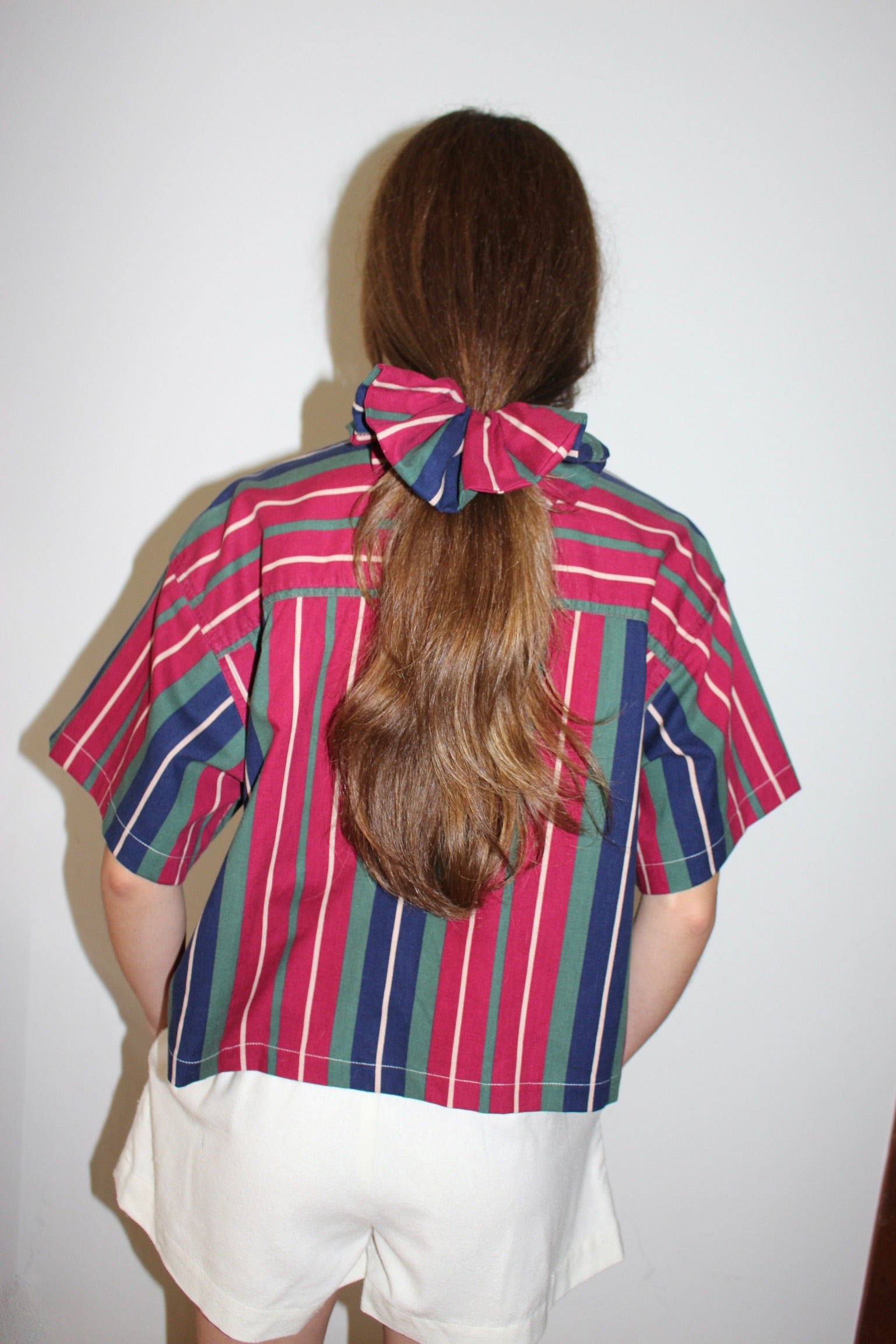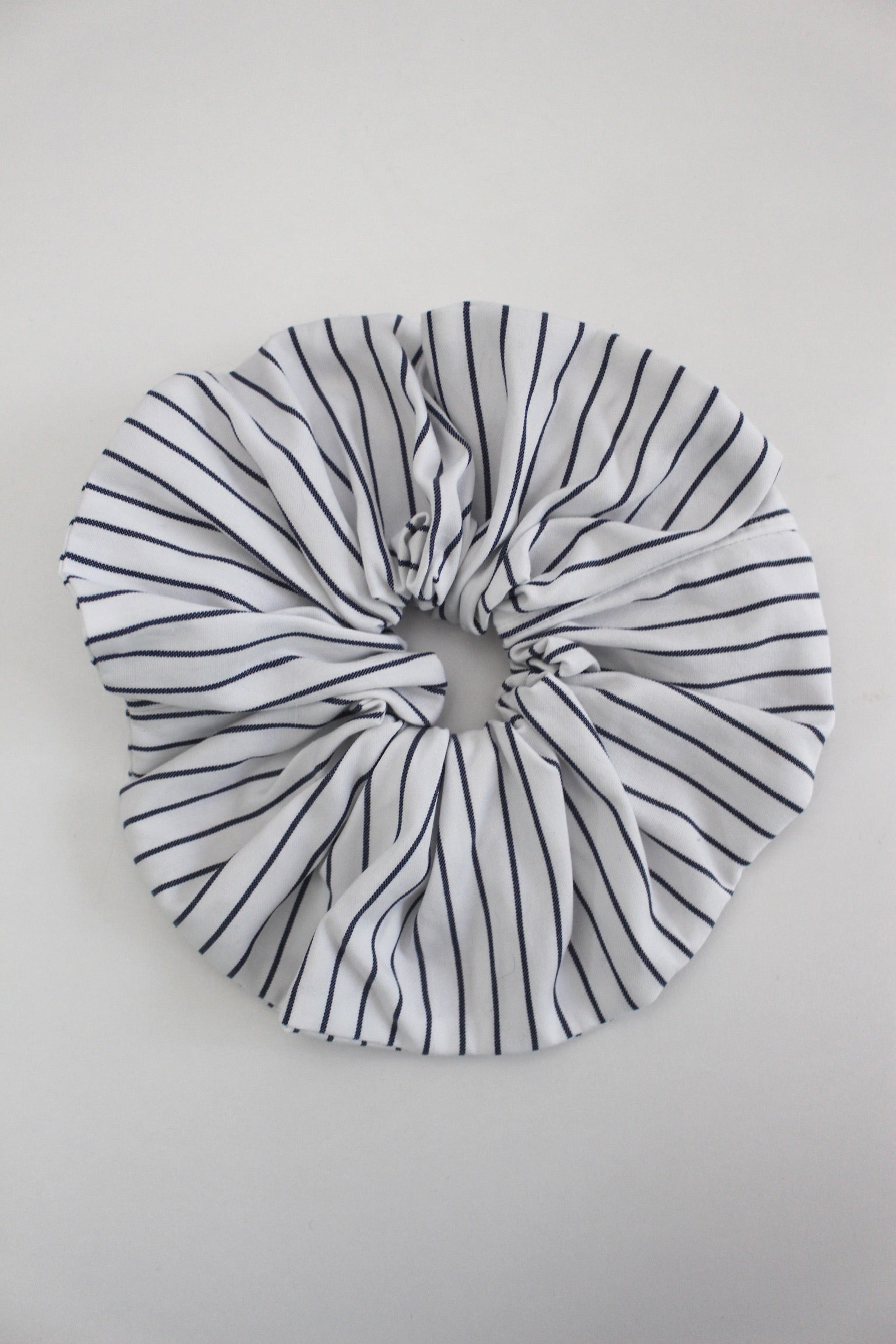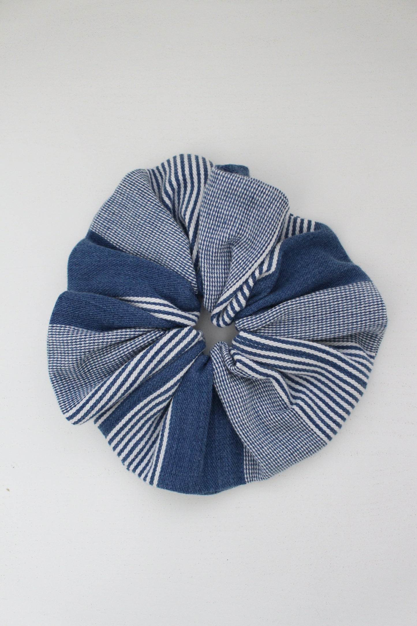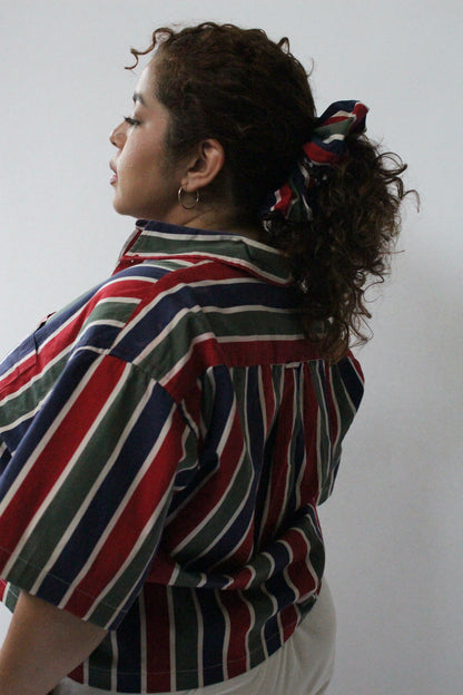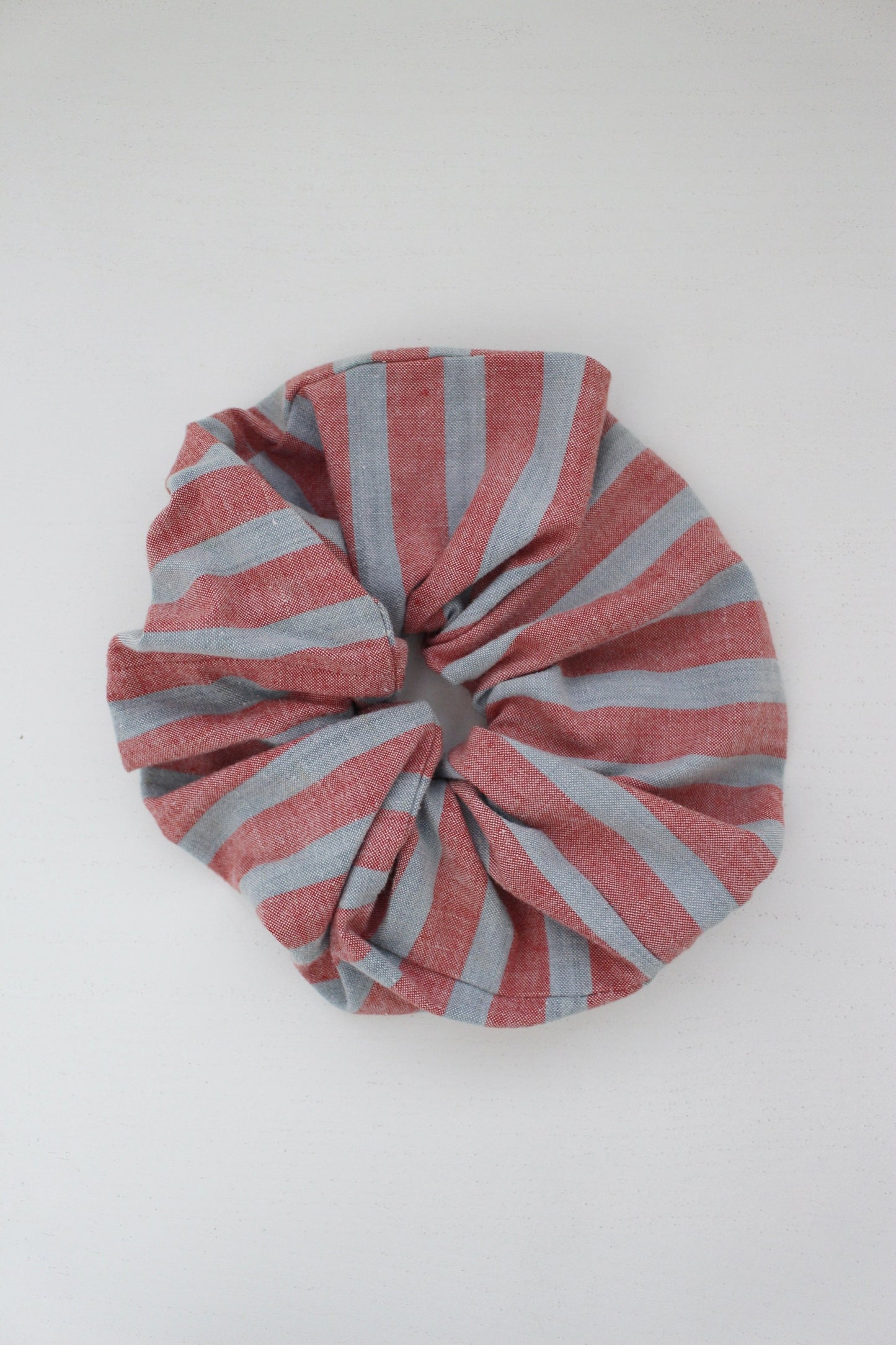 The Reworked Striped Scrunchie is made from remnants left over from the production of our Reworked Cropped Button Down.
