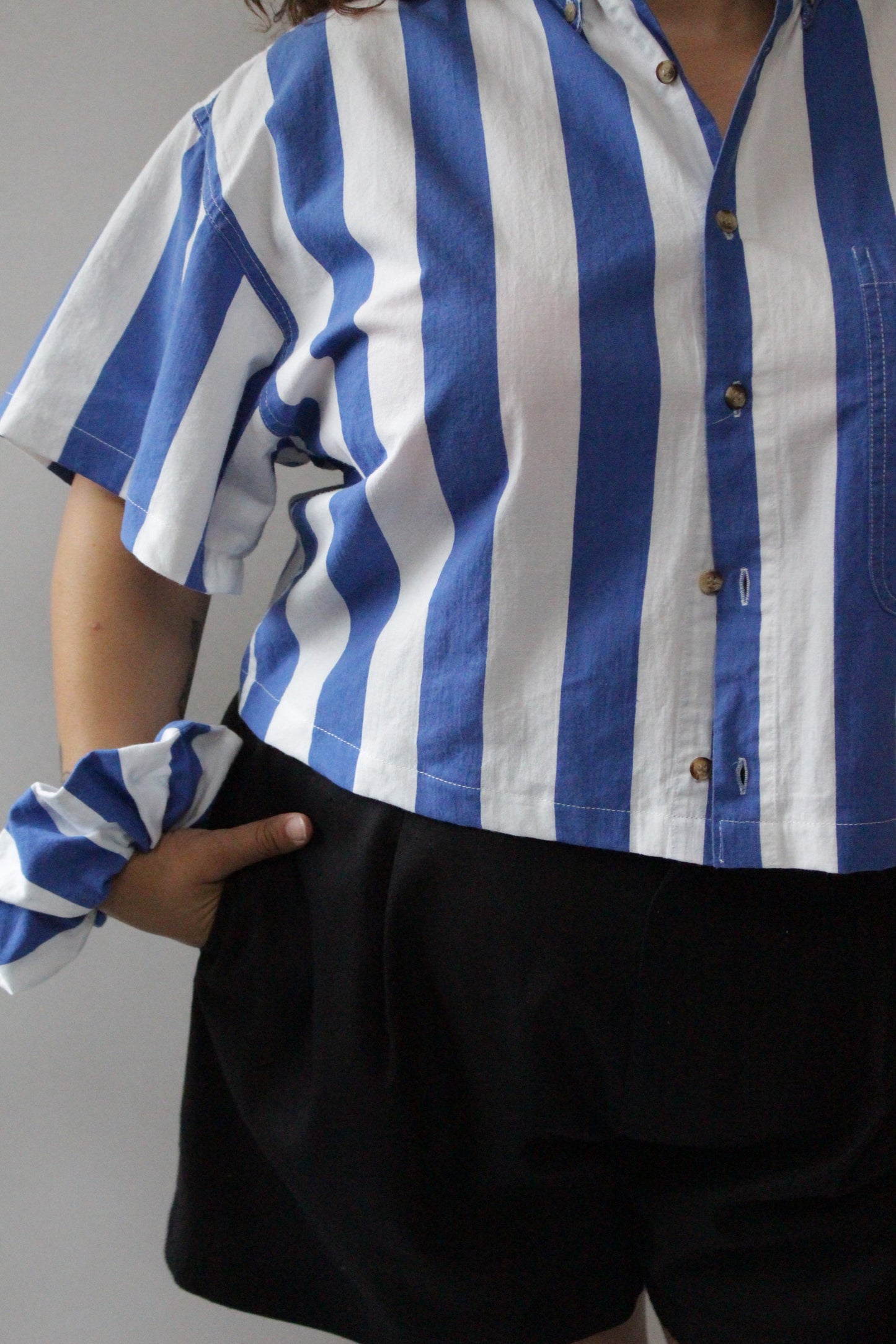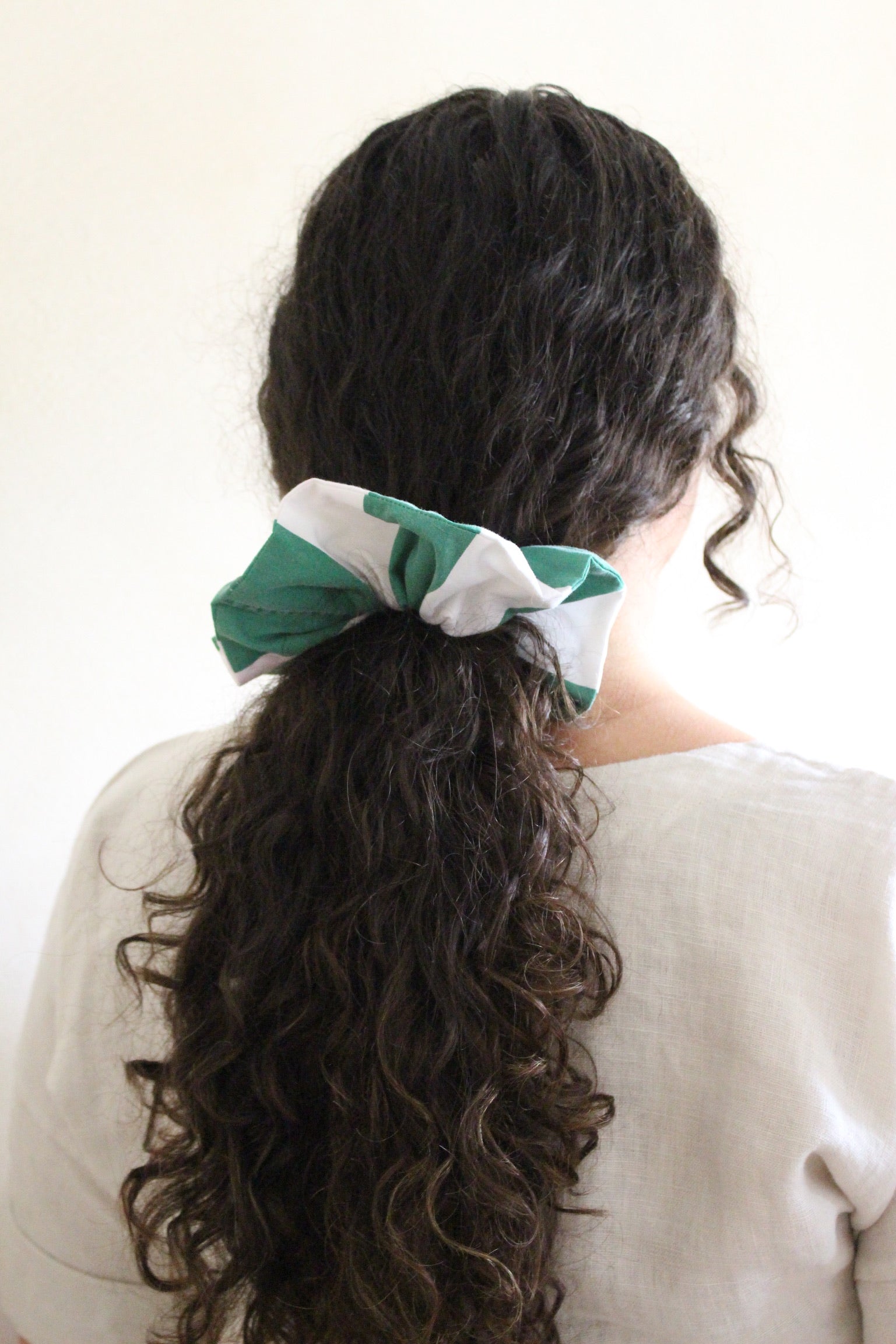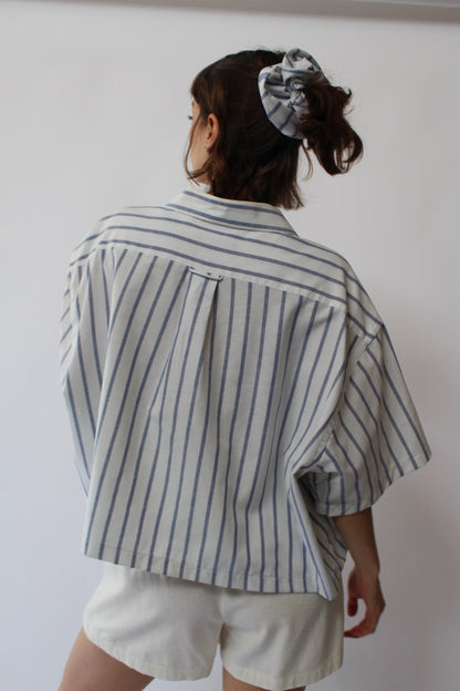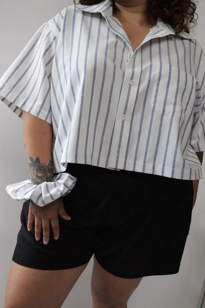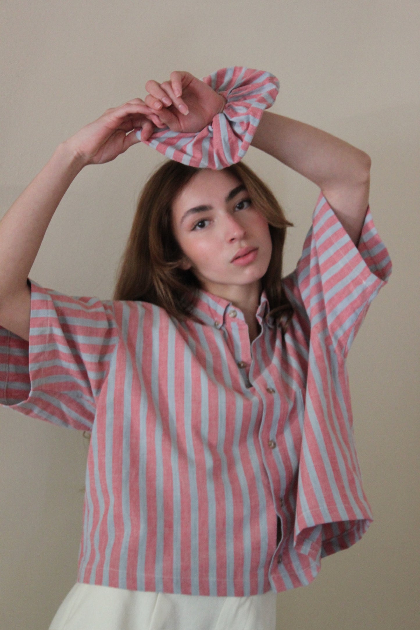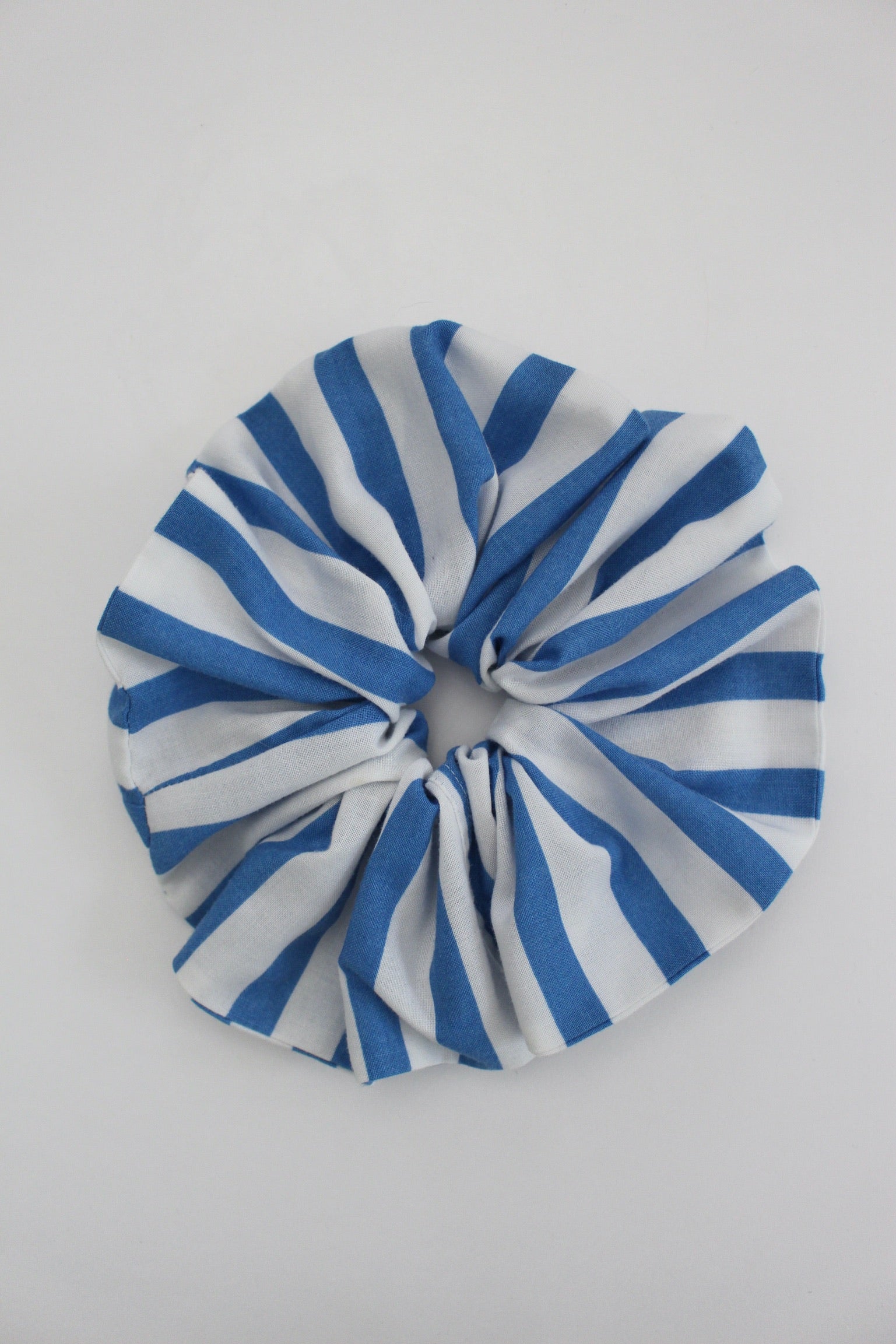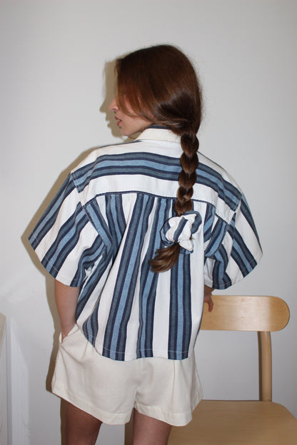 The Reworked Striped Scrunchie is made from remnants left over from the production of our Reworked Cropped Button Down.