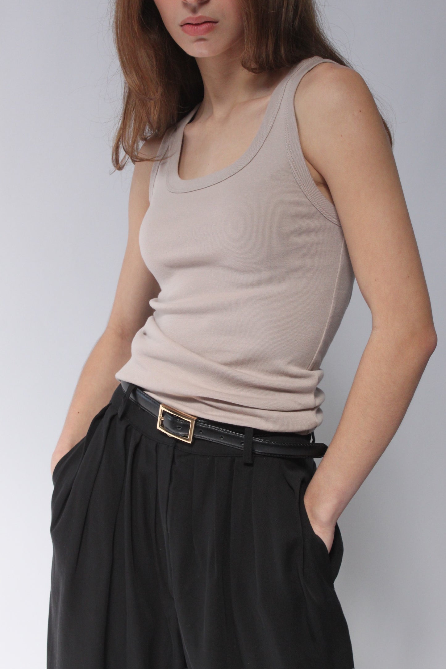 This timeless rib tank boasts a scoop neckline and wide binding, while its slim fit allows for effortless layering and tucking. Its baby rib fabric provides superior stretch and recovery.
