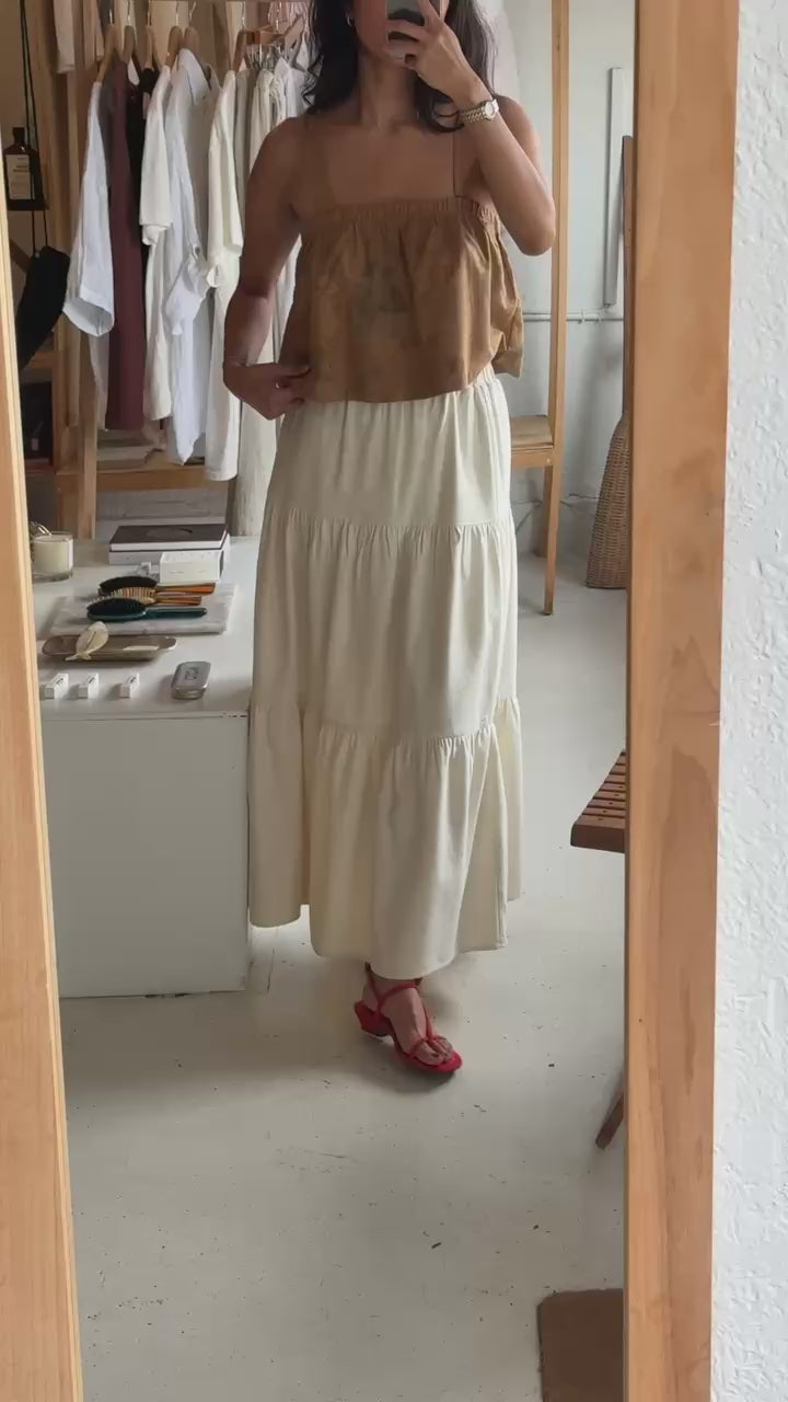 The Sabina Top is a simple boxy cropped tank, available in our beloved seasonless raw silk fabrication. The Sabina boasts an effortless and easy cropped fit perfect for pairing with high-waisted trousers and shorts.
