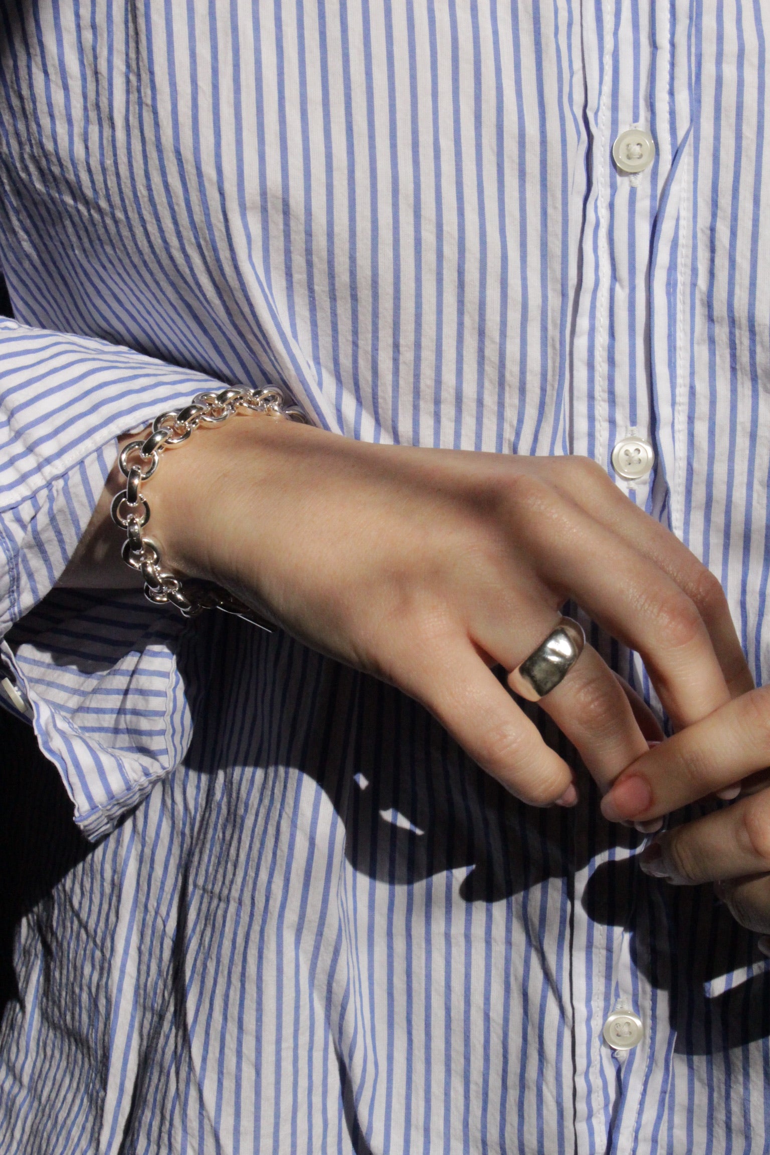 The Phoebe Sterling Silver Ring delivers quiet sophistication with its polished surface and deliberate minimalist design. A foundational piece that commands attention without excess, it transitions effortlessly from layered compositions to solo wear. Its clean lines and substantial presence make it an essential anchor for building a refined, personalized jewelry collection alongside pieces like the Sammi Ring.