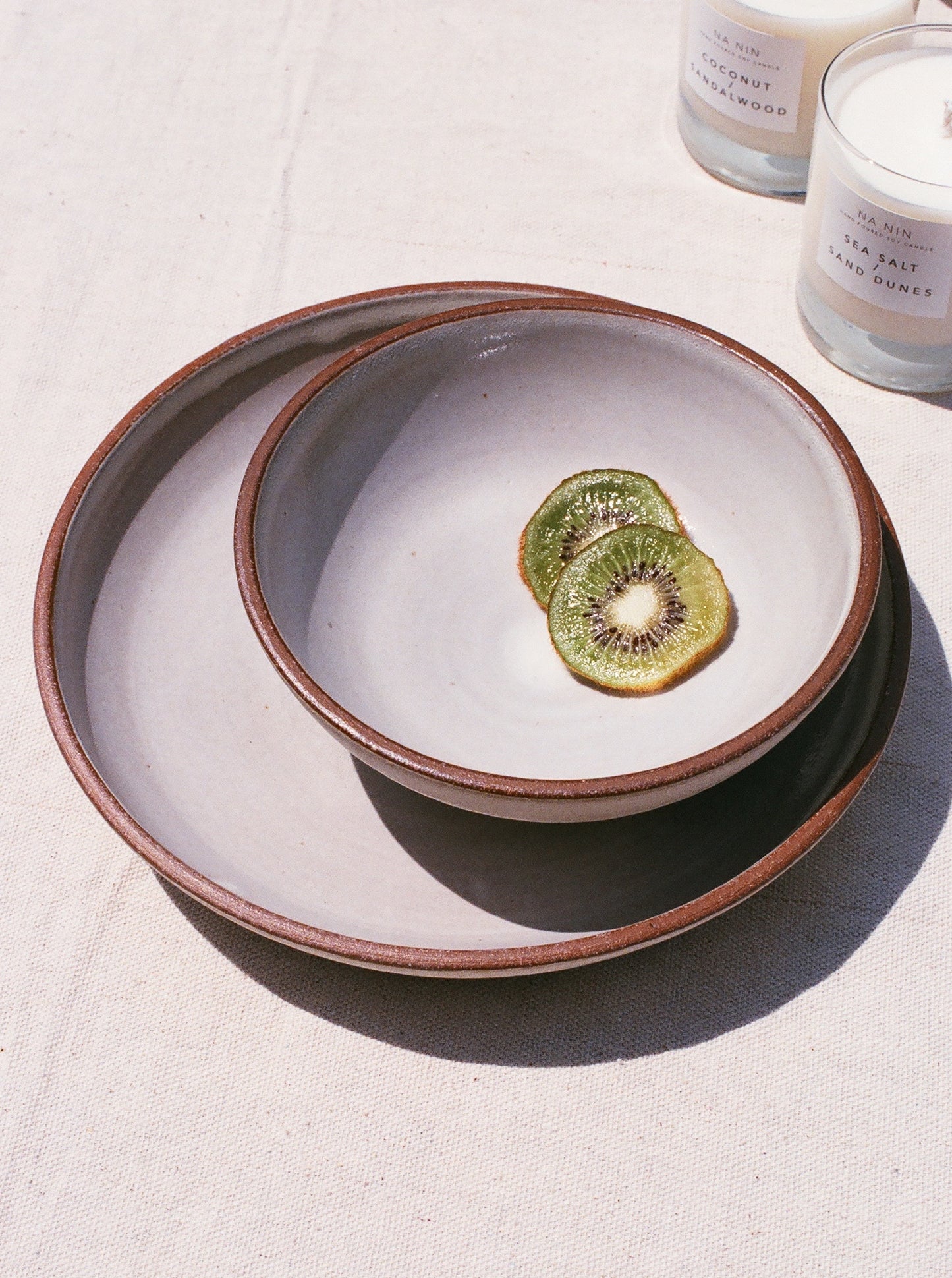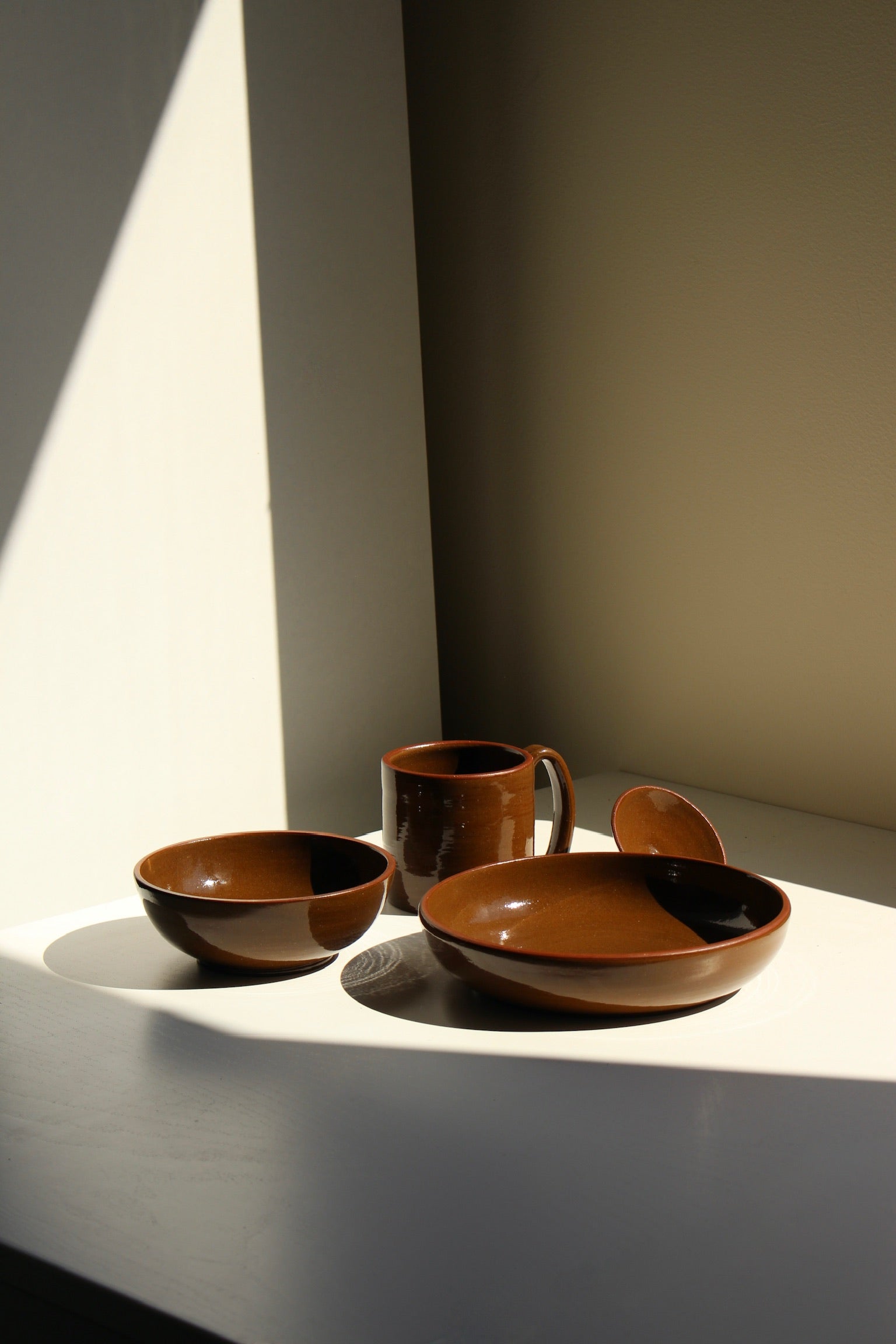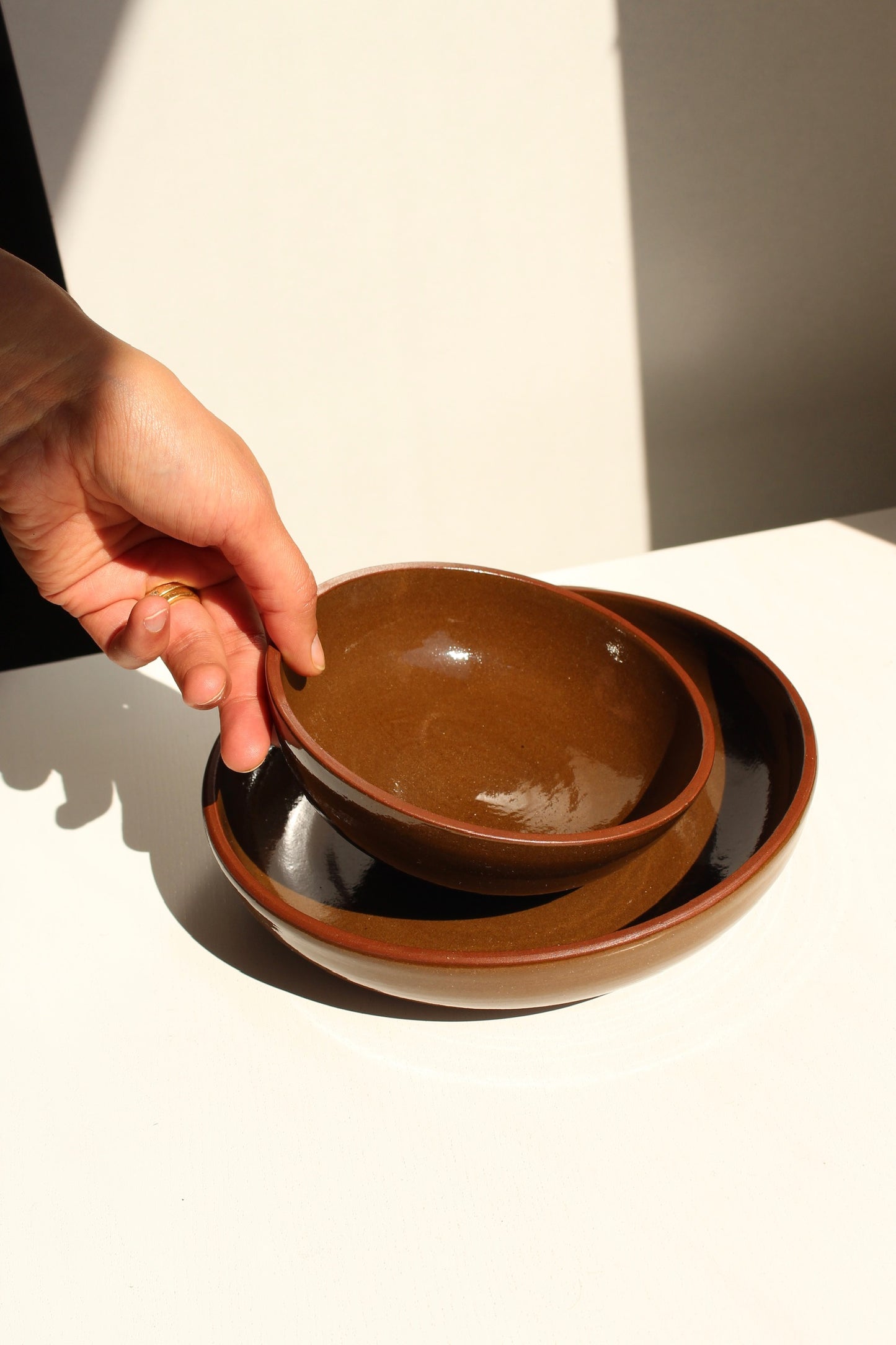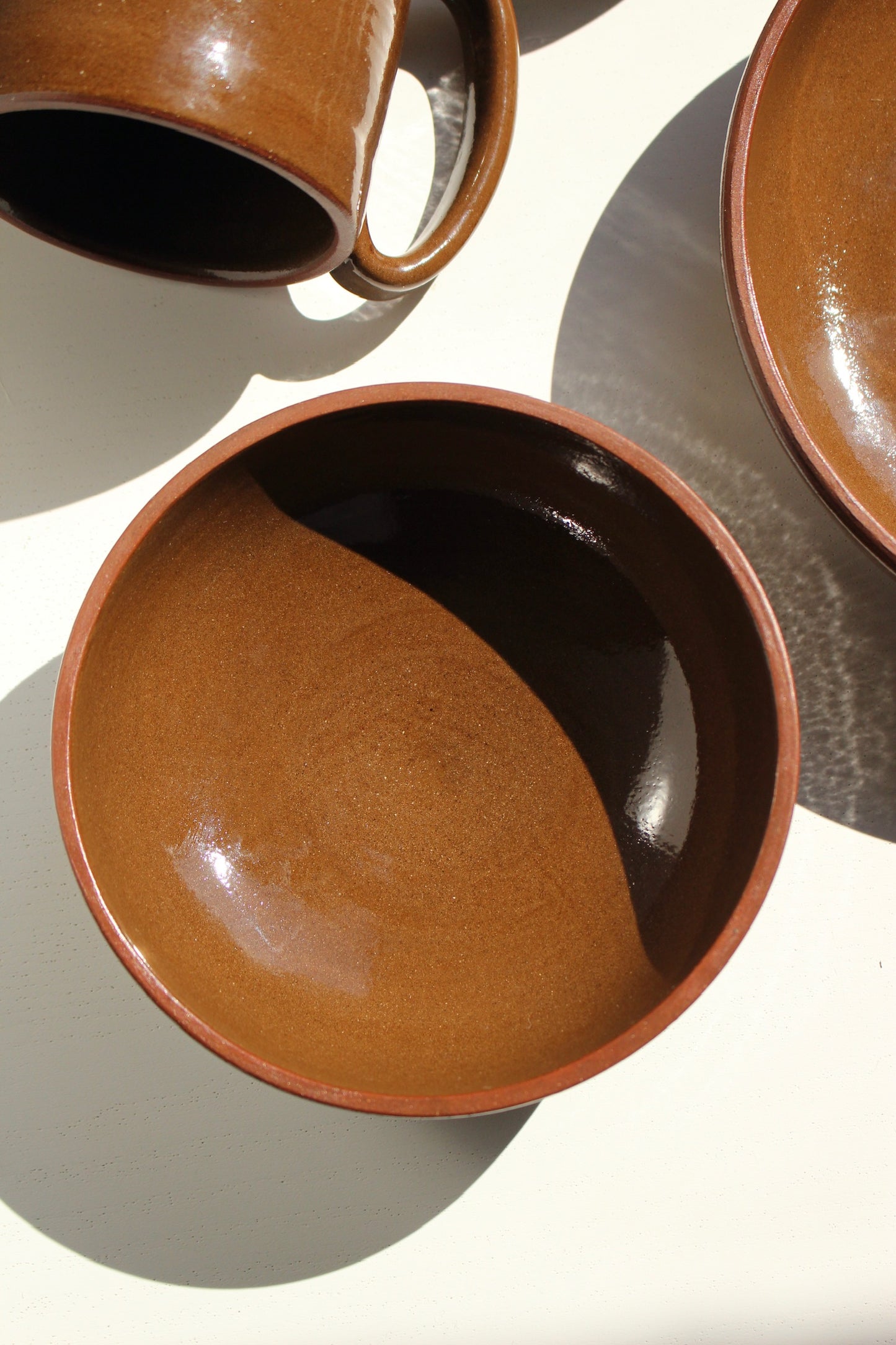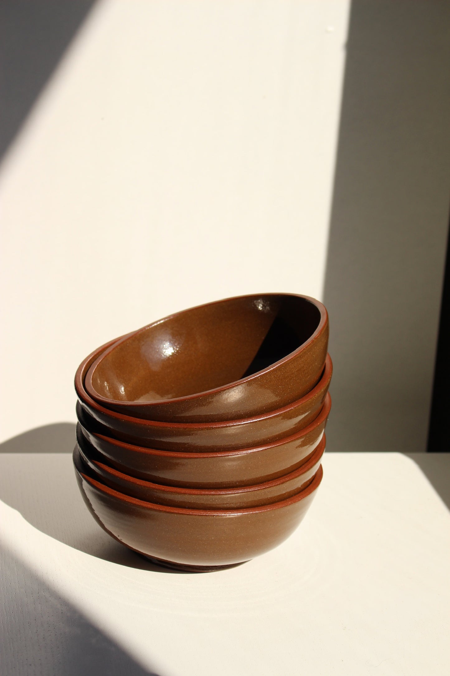 Ceramic bowl, ideal for soup, salad or snacks. The bowl has a matte off-white finish or glossy espresso on outer surface and food safe glaze inside.