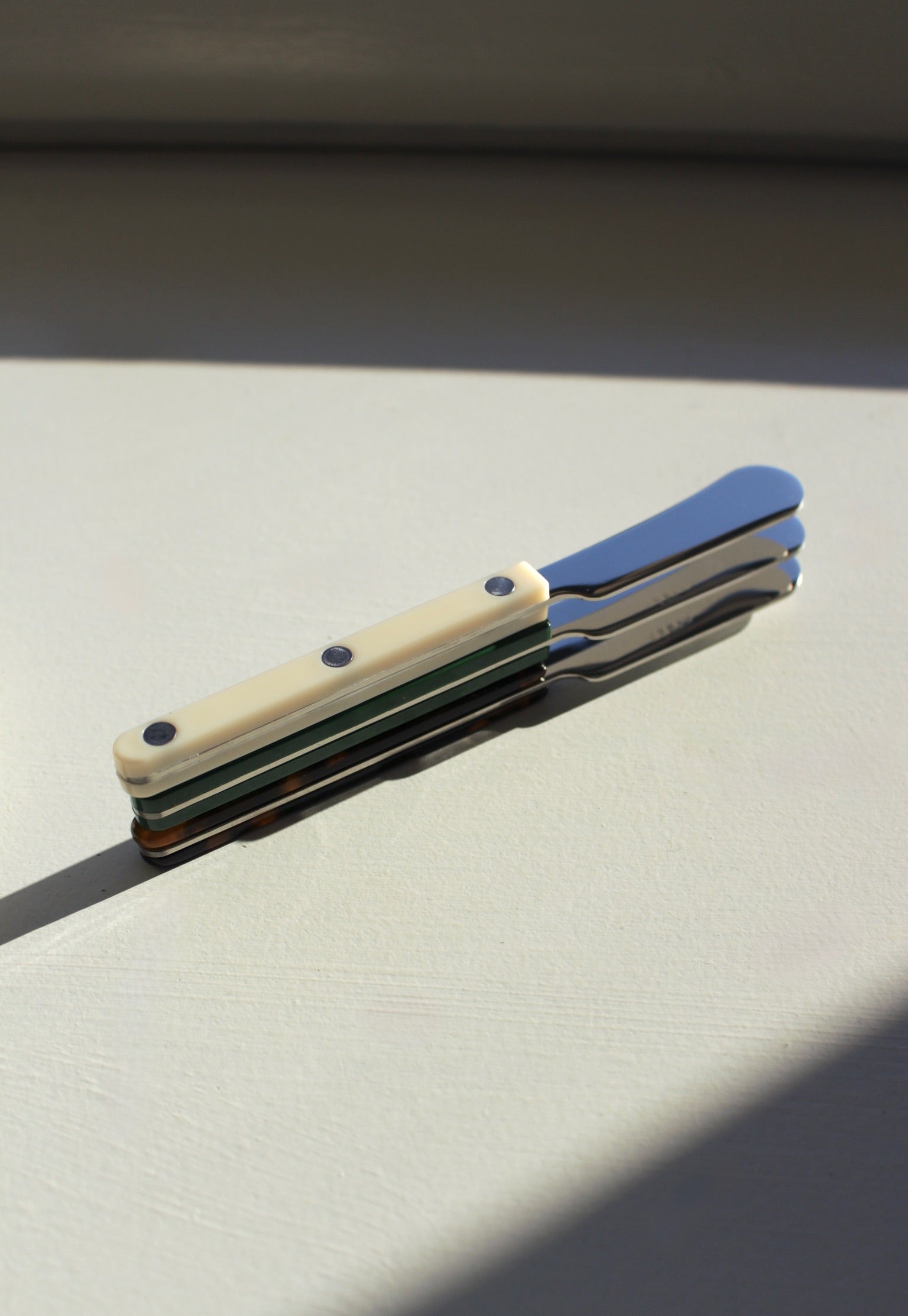 Featuring a smooth, non-slicing blade, the Sabre butter spreader glides easily through soft butter, tapenades, taramas, and other spreads, ensuring perfect application on bread or toast every time.