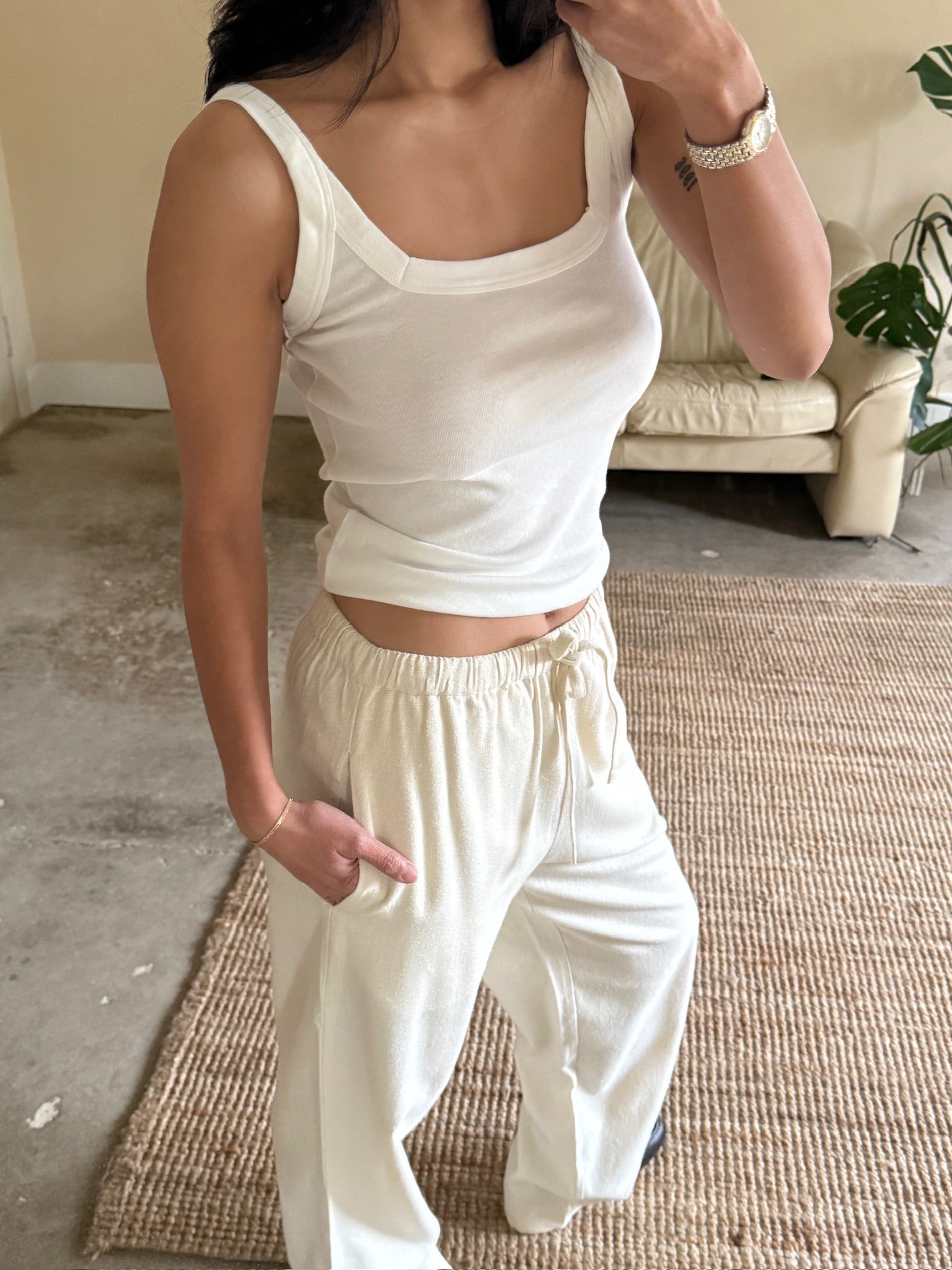 Introducing a refined take on the classic rib tank, crafted from premium organic baby rib produced locally in Los Angeles. The breathable organic fabric delivers comfort without compromise, while distinctive design elements—a squared neckline and bold straps—distinguish this piece from conventional styles. Built for versatility and longevity, it's an essential layer that bridges timeless construction with modern sensibility.