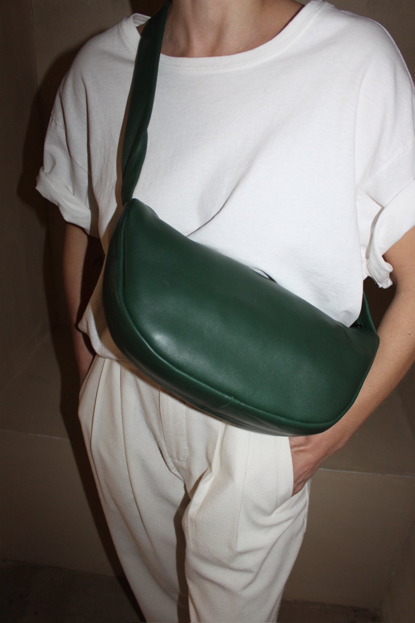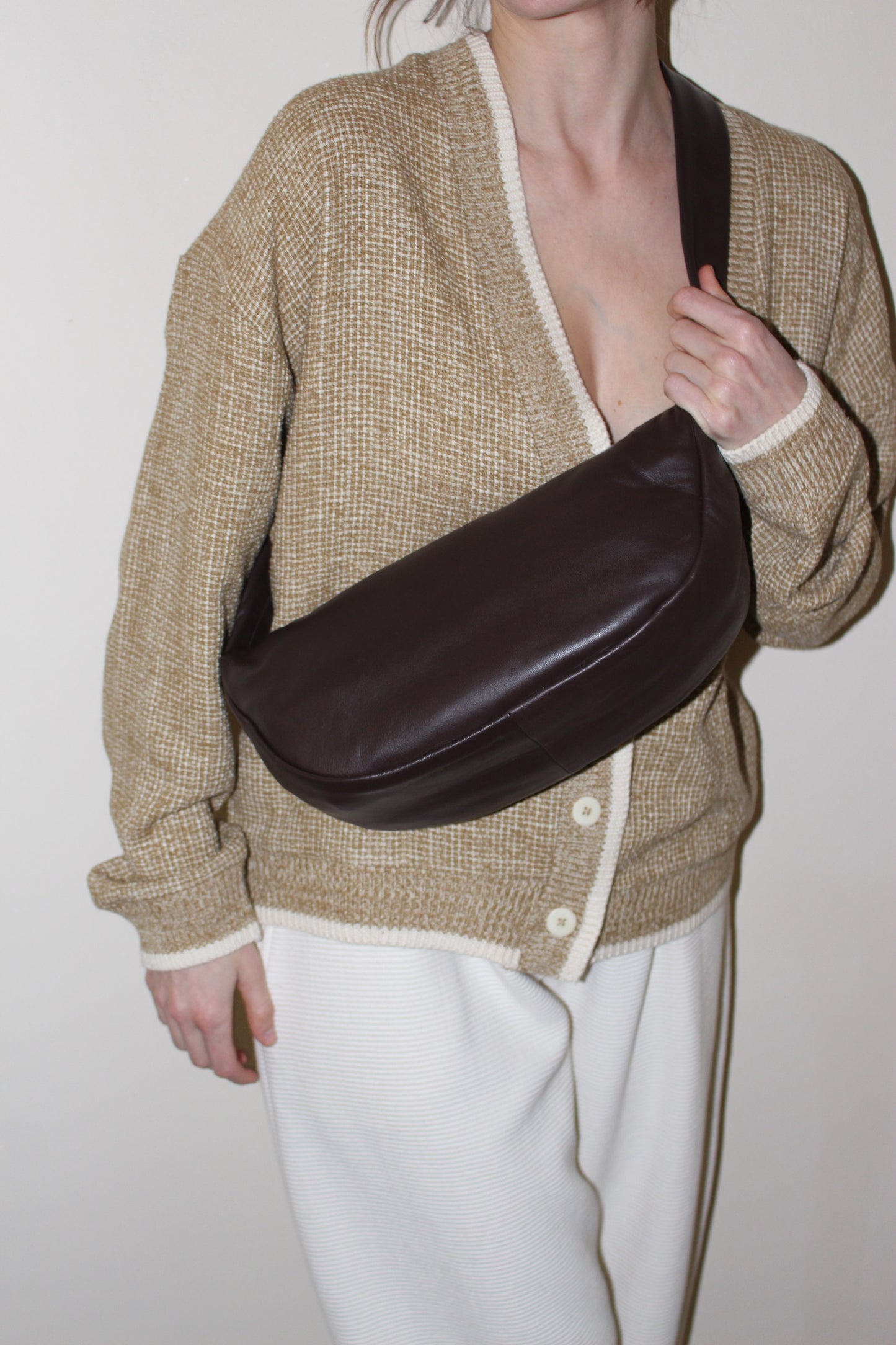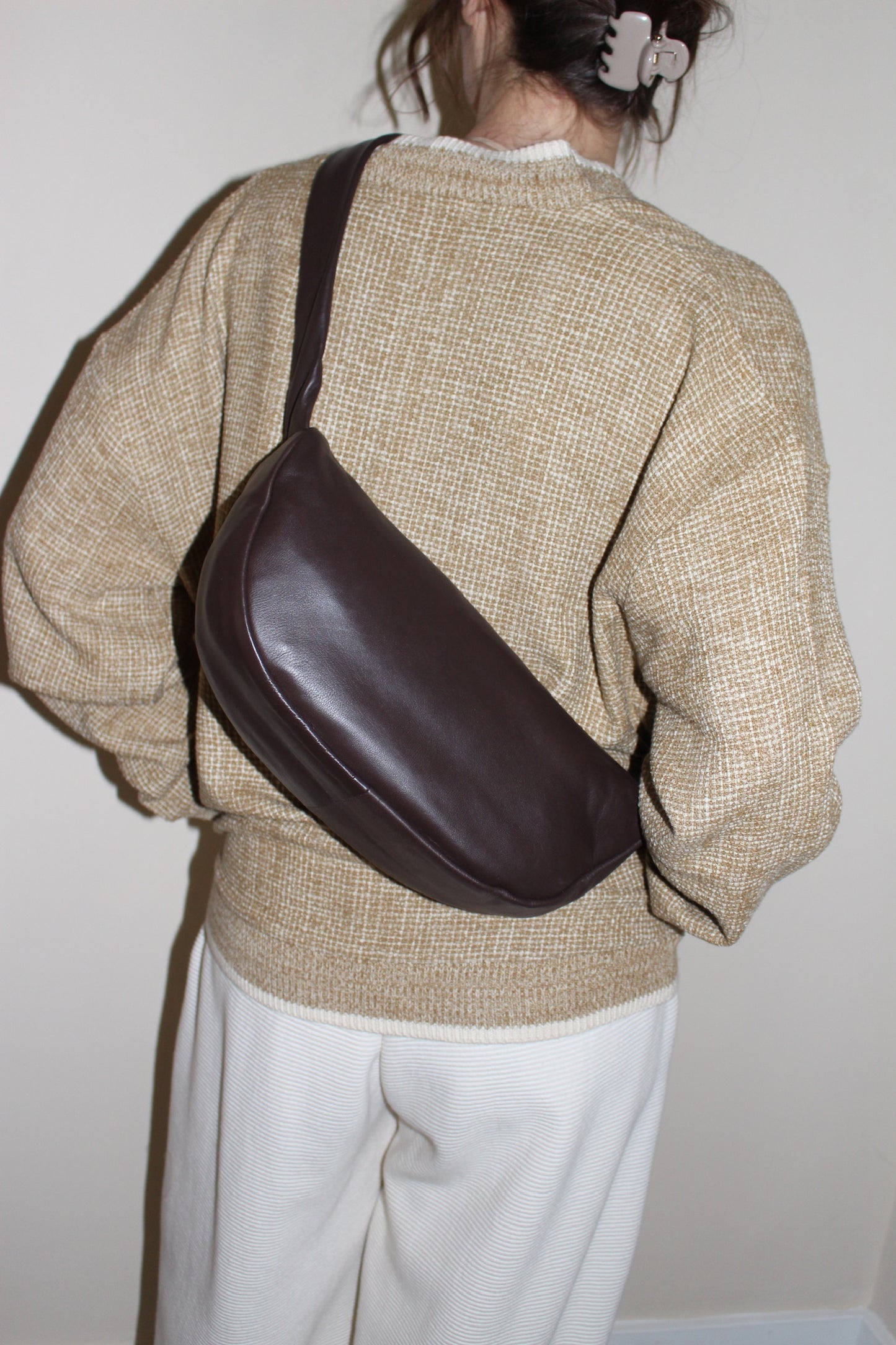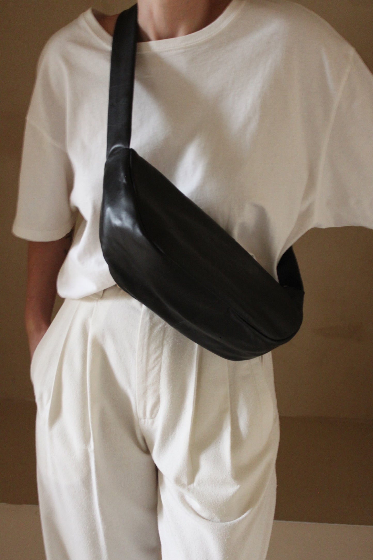 The Soft Crescent Bag from St. Agni is a petite carry-all design and a new season staple for someone on the go. Intended to be worn cross body or over the shoulder for an effortless look, this bag is a staple for any capsule wardrobe. The Soft Crescent Bag features a relaxed structure, a single shoulder strap, seam detailing, and a secured zipper closure. Pair the Soft Crescent Bag with our Stella Waffled Cotton Top and our Bobbie Wrap Skirt in Vintage Wash Modal for a time-honored look.