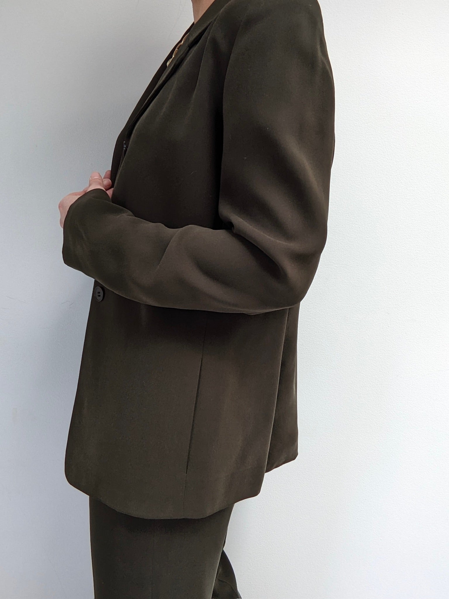 Stunning Vintage Olive Silk Pantsuit