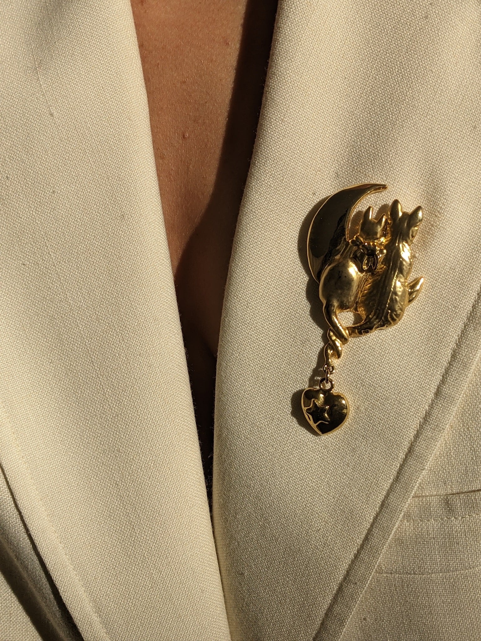 Sweetest Vintage Gold Cat & Dog Brooch