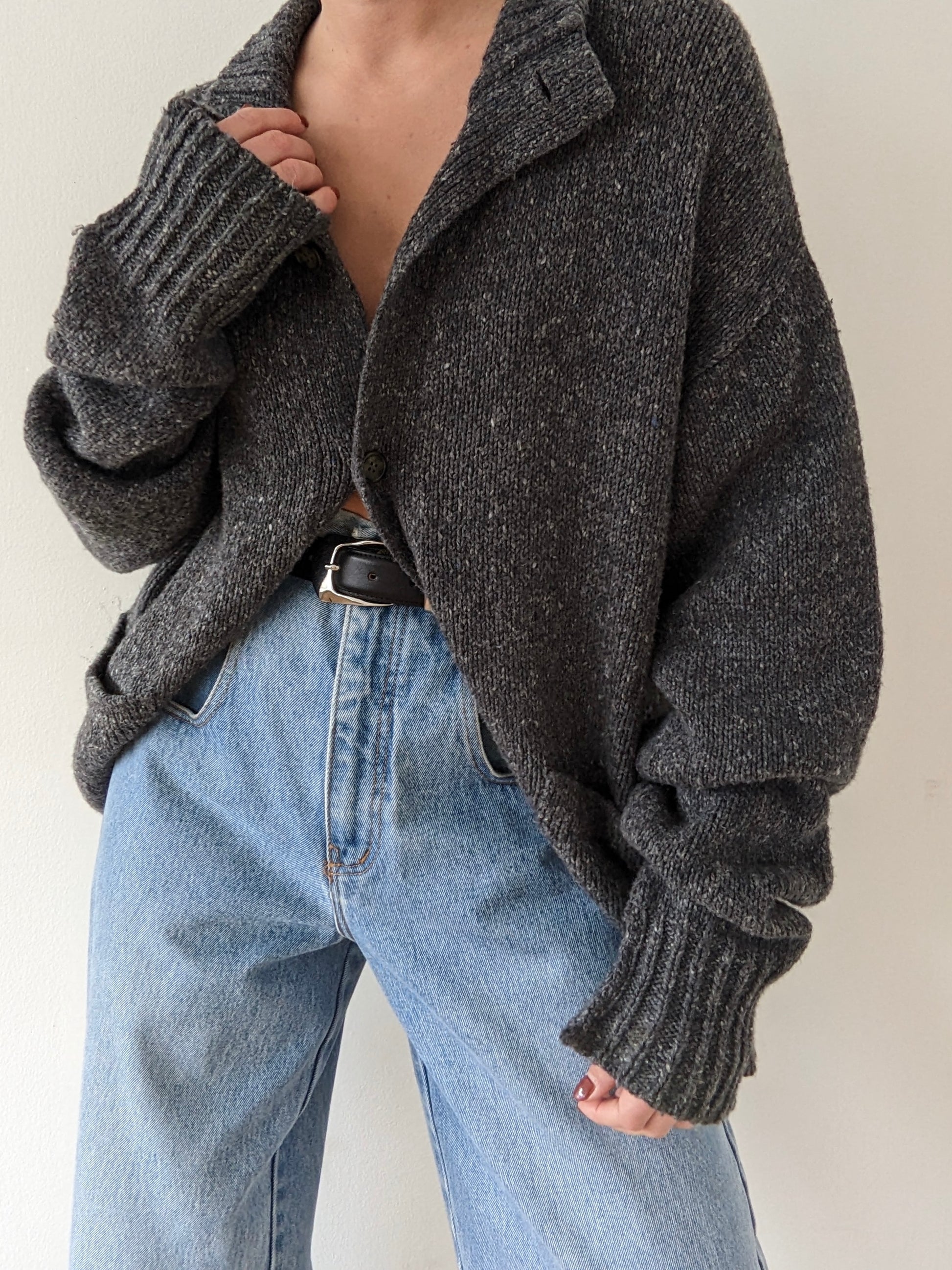 Vintage Charcoal Collared Wool Cardigan