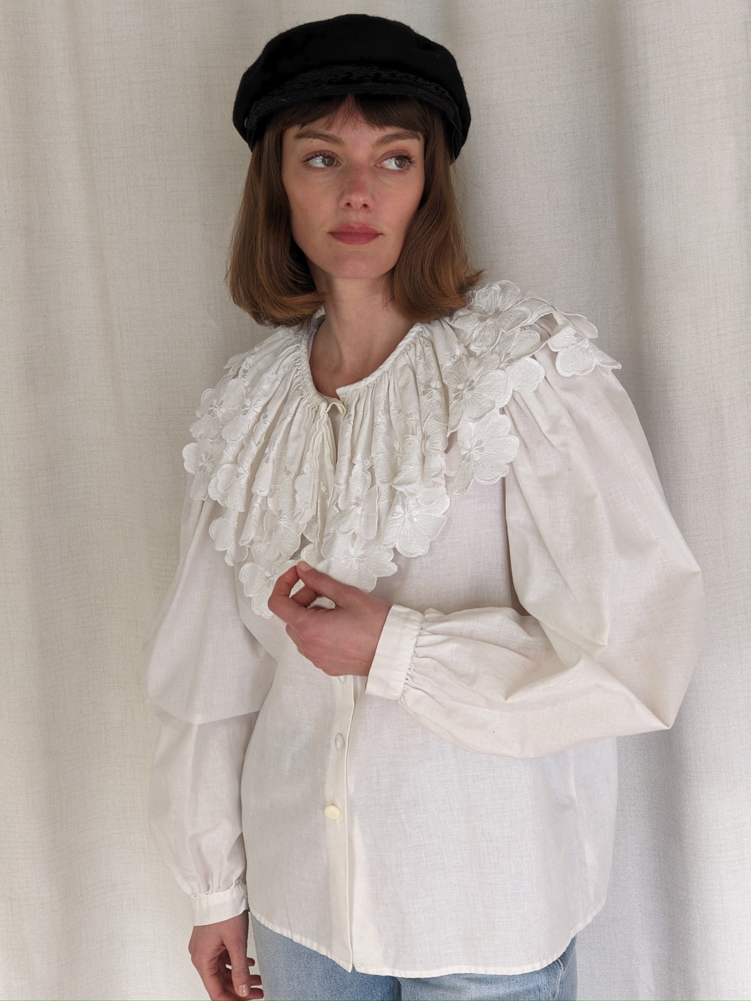 Lovely vintage Greek fisherman's cap in a felted wool. Cap has a petite front brim with embroidered & twisted rope accents.