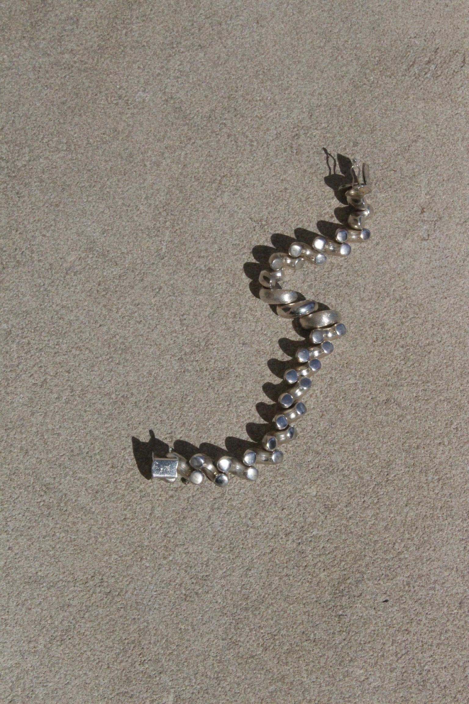 Lovely vintage Italian Sterling silver bracelet in a classic San Marco link design. Bracelet features alternating brushed & smooth silver links and an elegant box clasp with additional clip for added security.