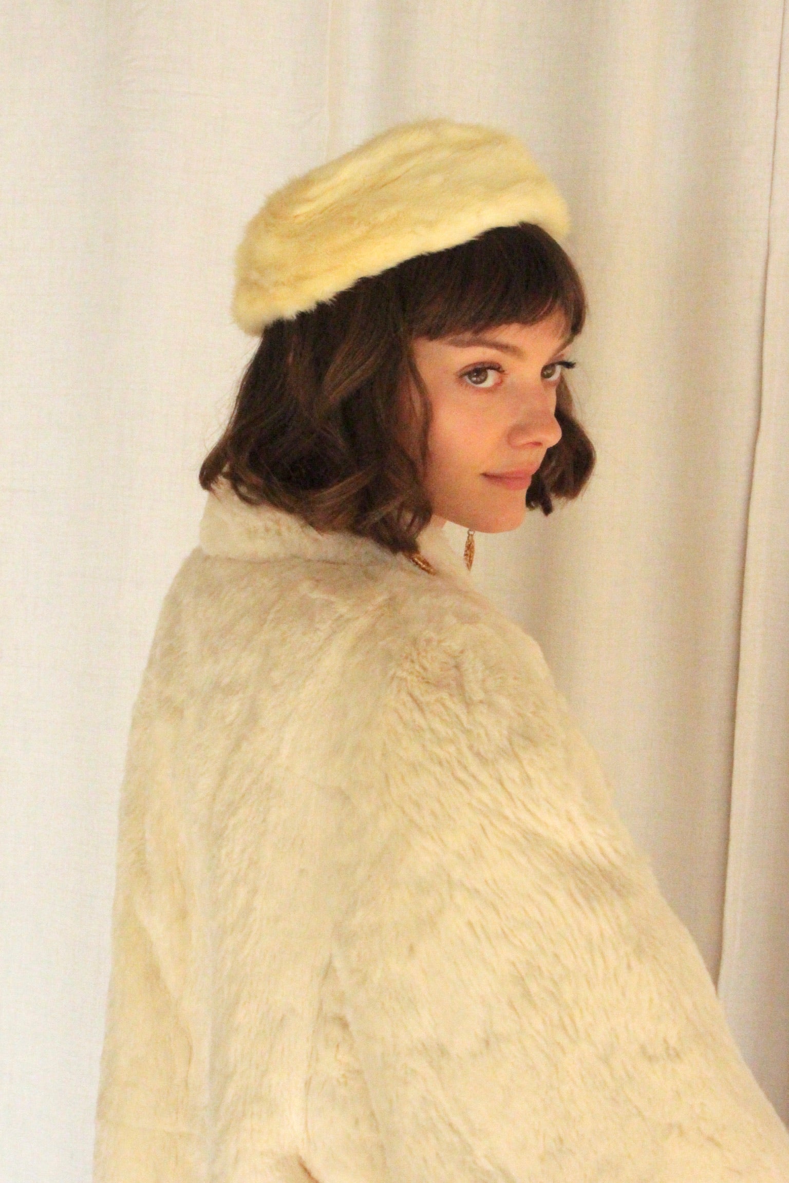 Vintage Ivory Fur Pillbox Hat