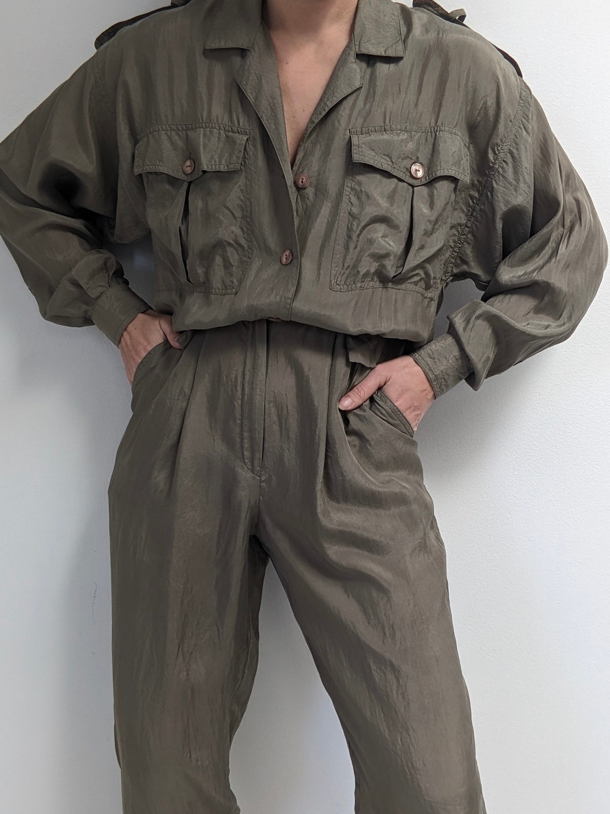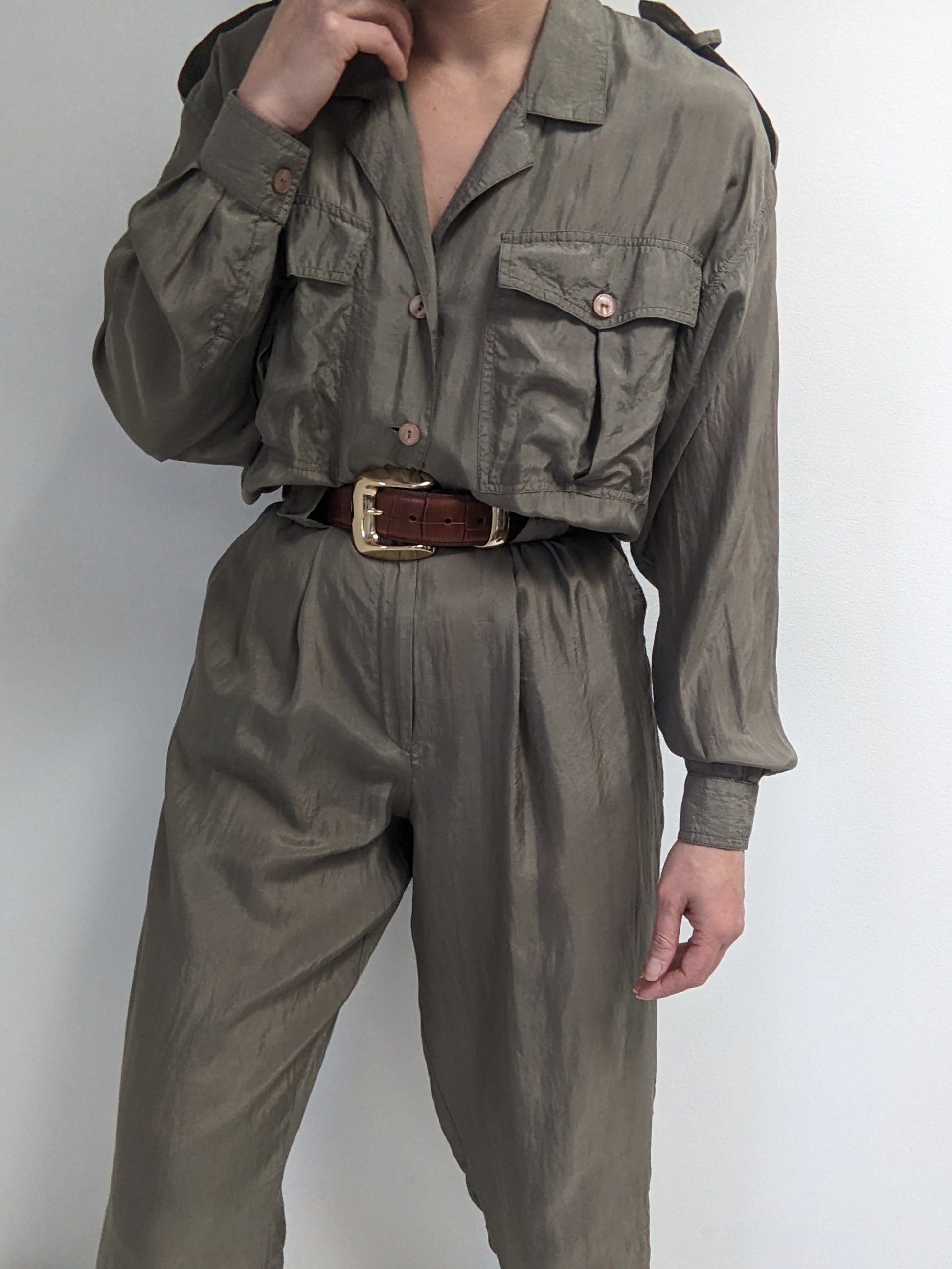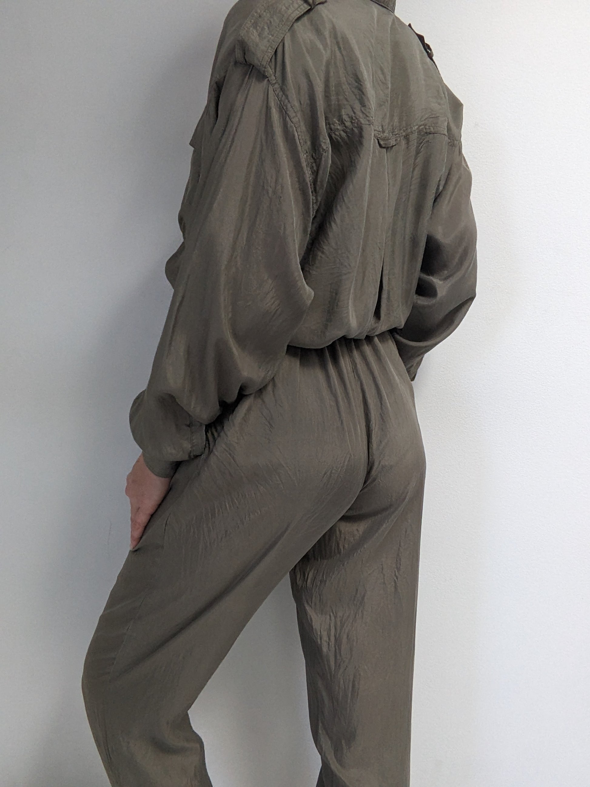 Vintage Olive Smooth Silk Jumpsuit