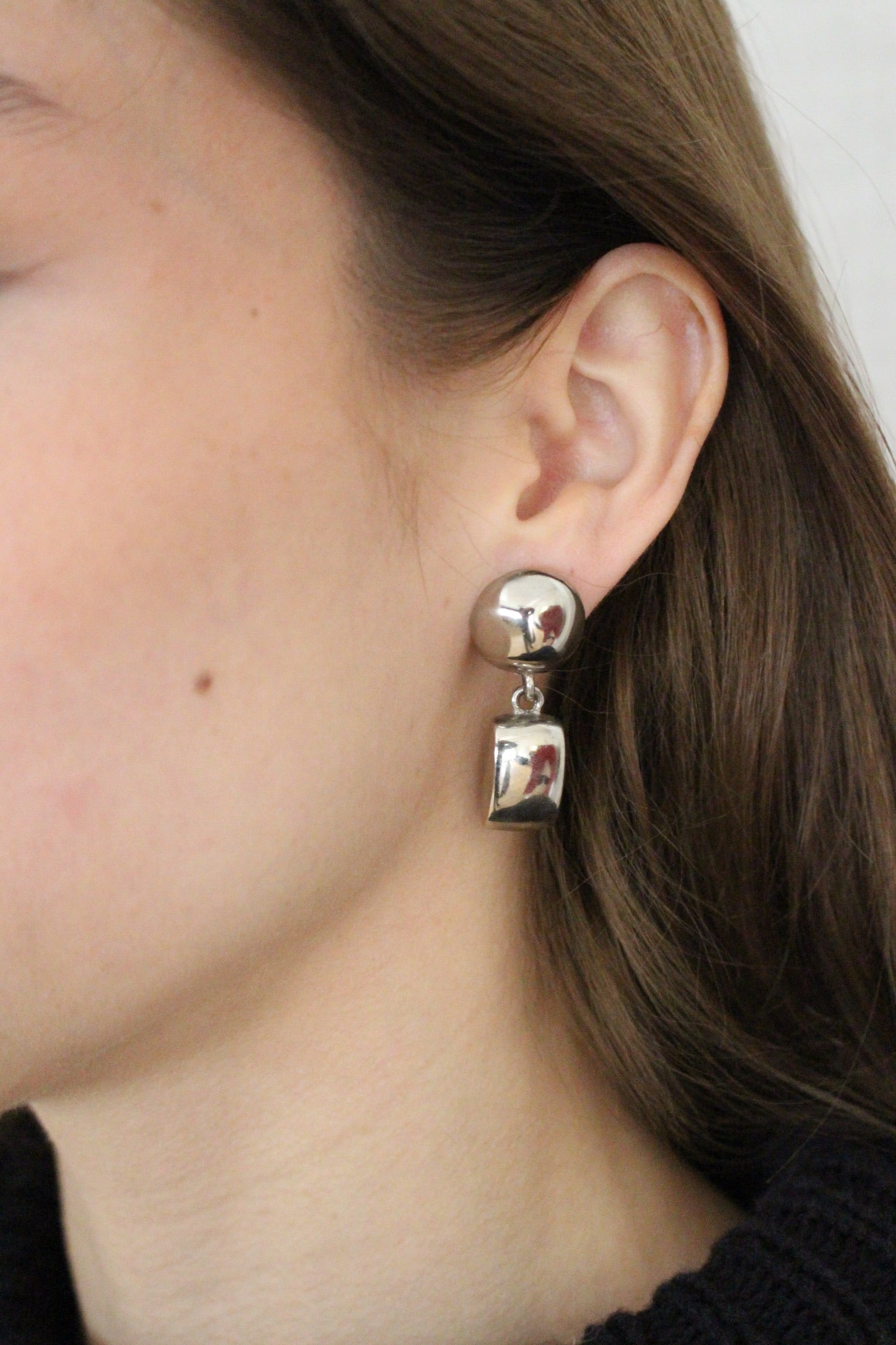 Vintage Silver Modernist Drop Earrings