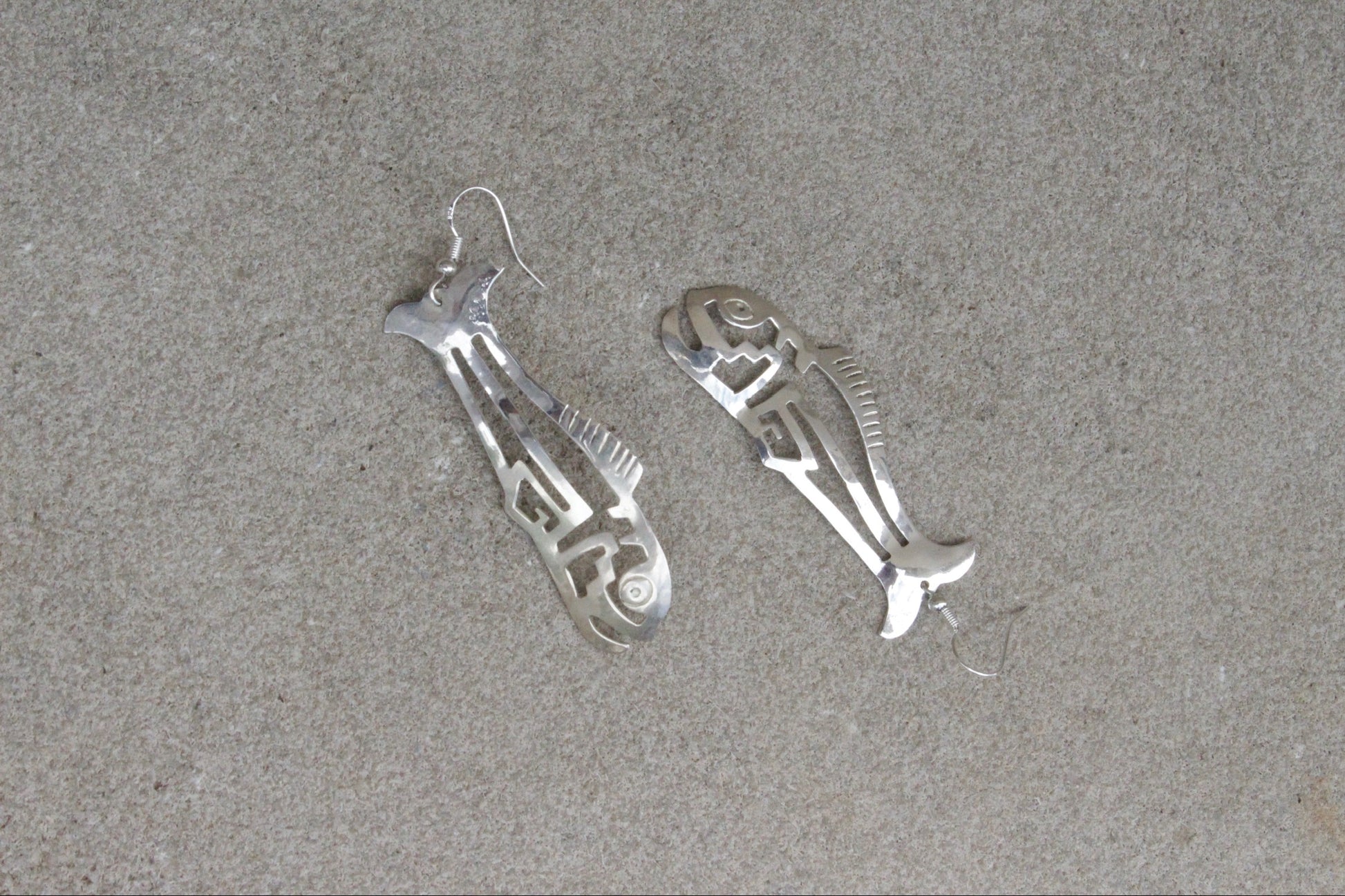 Rare Vintage Sterling Silver Abstract Fish Earrings