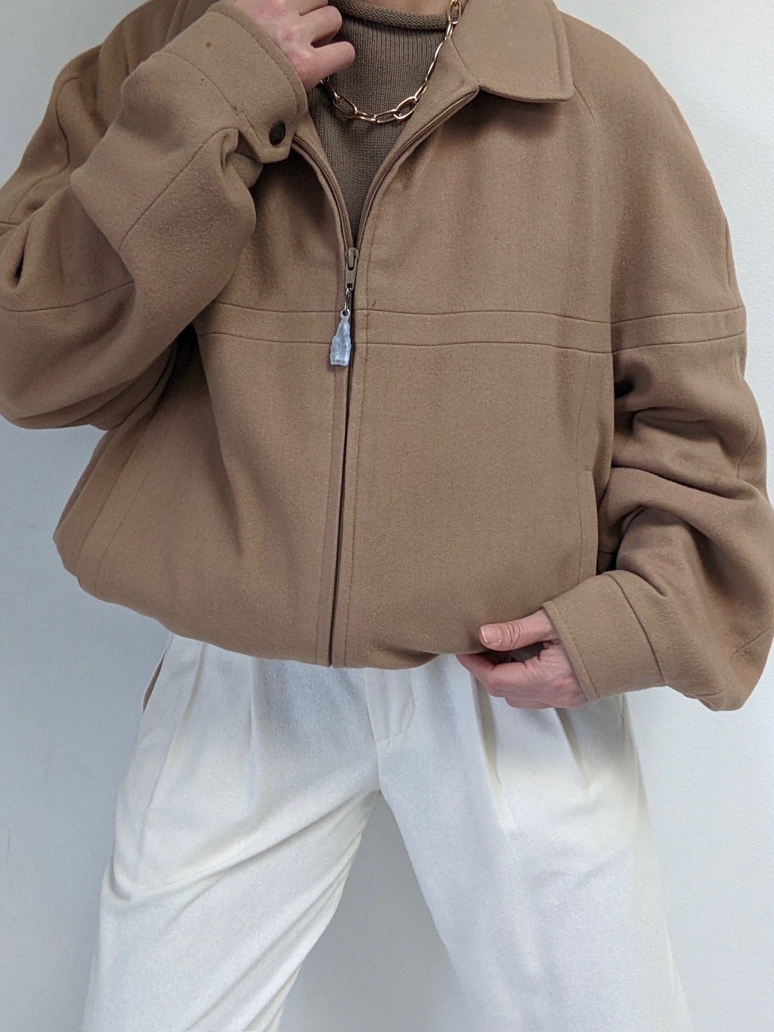 Vintage Toffee Wool Bomber Jacket
