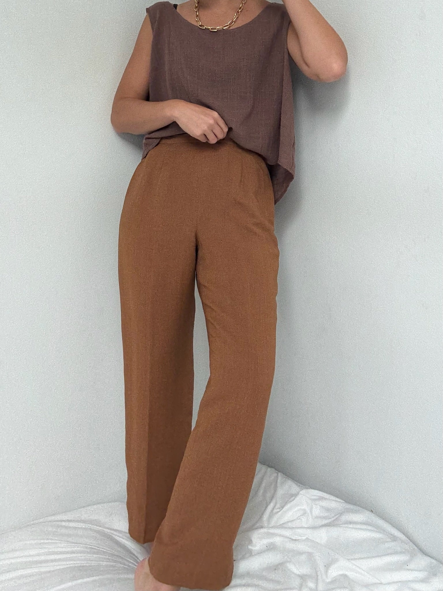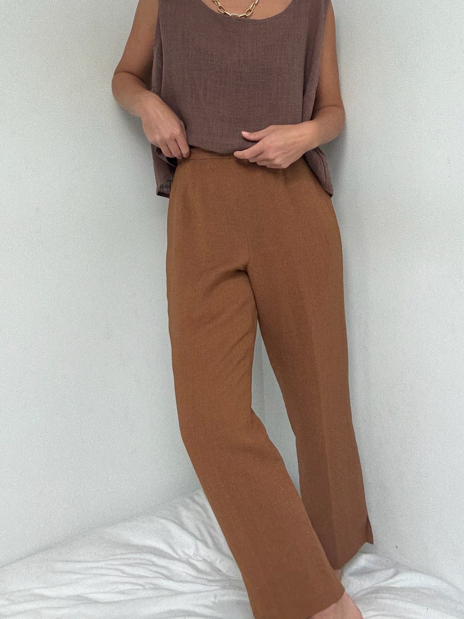 Vintage Toffee Woven Linen Pants